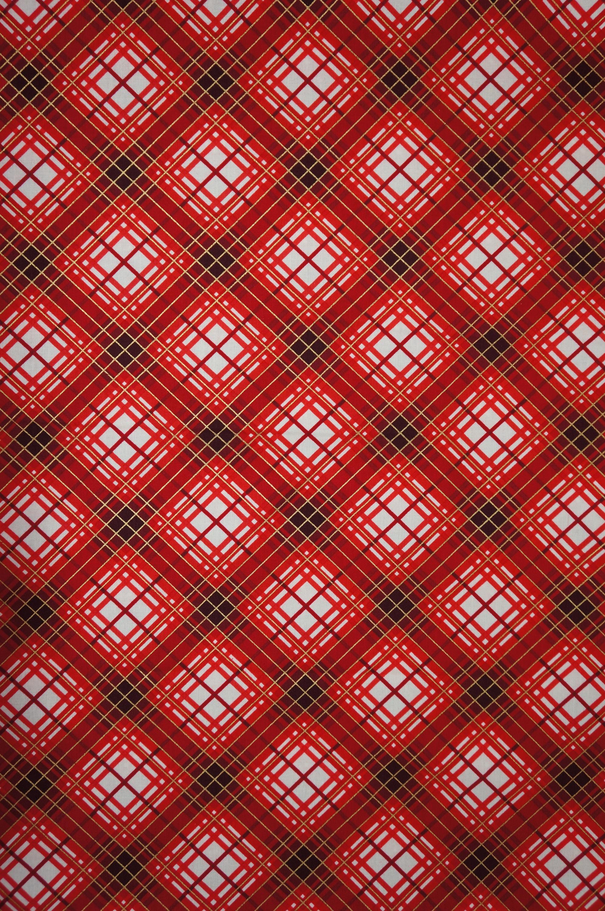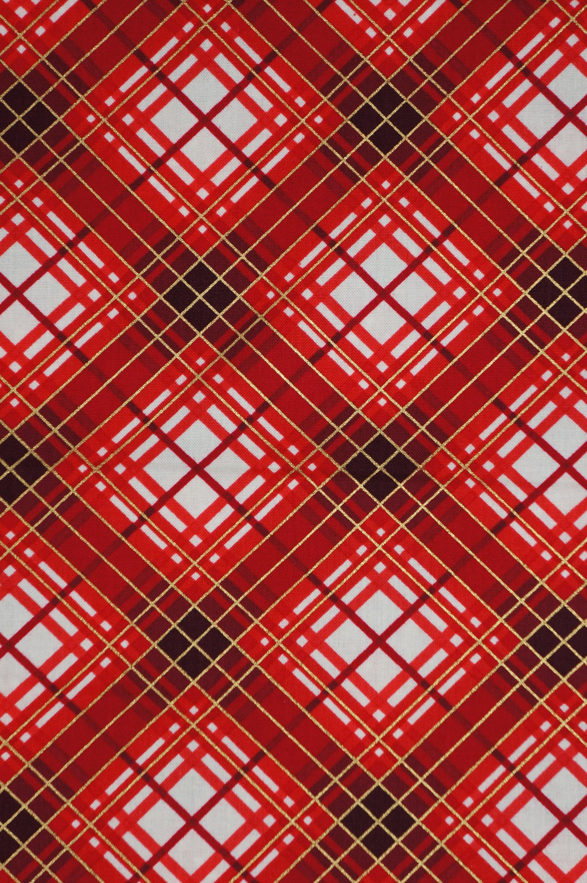 Get ready to infuse your holiday projects with festive flair with this Christmas Bias Plaid with gold metallic accents quilting cotton fabric designed by Kanvas Studio for the Christmas Musical Collection by Benartex! Bursting with colors of red, black, cream and metallic gold this screen-printed fabric exudes the timeless charm of classic Christmas plaid. The plaid crafted from 100% high quality quilting cotton, it offers both durability and comfort, making it perfect for a myriad of DIY projects including quilts, stockings, table runners, and more. Let your creativity run wild as you bring the spirit of the season to life with this delightful fabric. Whether you're a seasoned quilter or a crafting enthusiast, this Christmas plaid fabric is sure to add a touch of holiday magic to your creations!