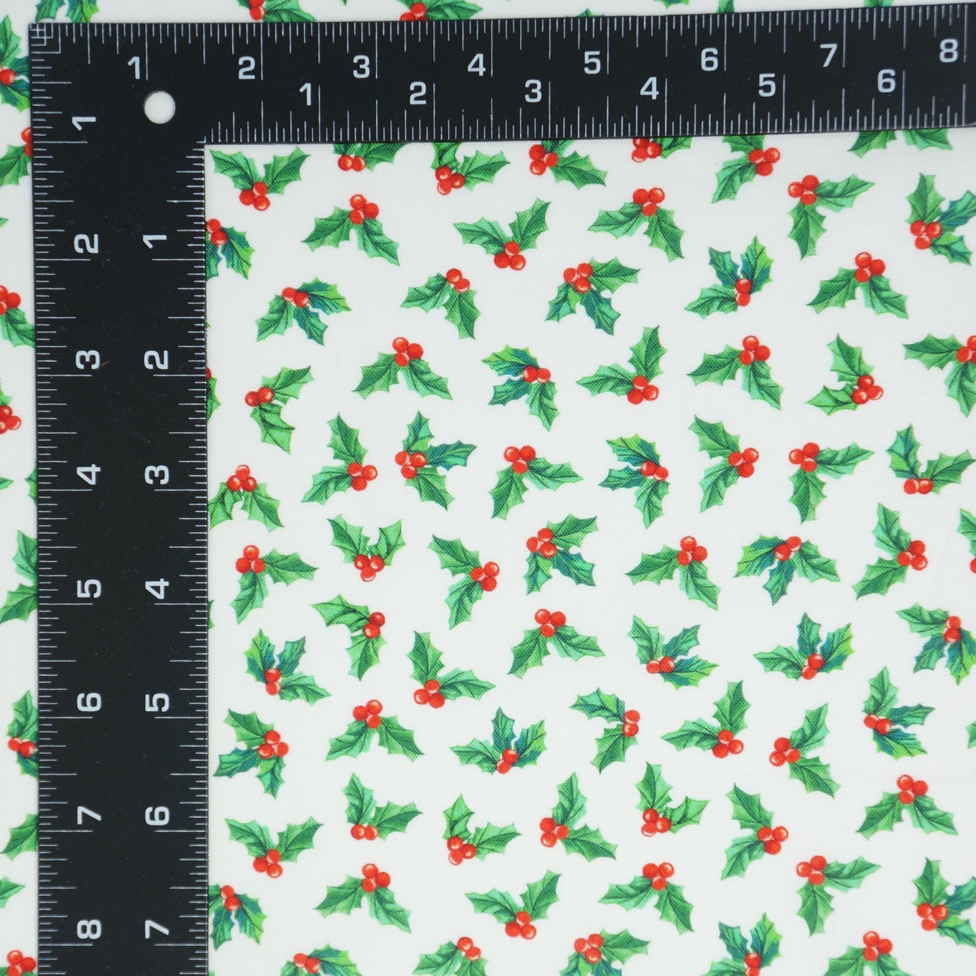 Transform your holiday projects with the enchanting charm of this Holly Leaves Fabric! This delightful fabric features vibrant holly leaves and bright red berries dancing on a bright white background, perfectly capturing the festive spirit of the season. Part of The Sugar & Spice Collection by Nicole DeCamp for Benartex Kanvas Studio, this premium quilting cotton is ideal for all your creative endeavors, from cozy quilts and seasonal table runners to stylish holiday décor and unique gifts. Bring a touch of Christmas magic to your creations and spread the joy of the season with every stitch!