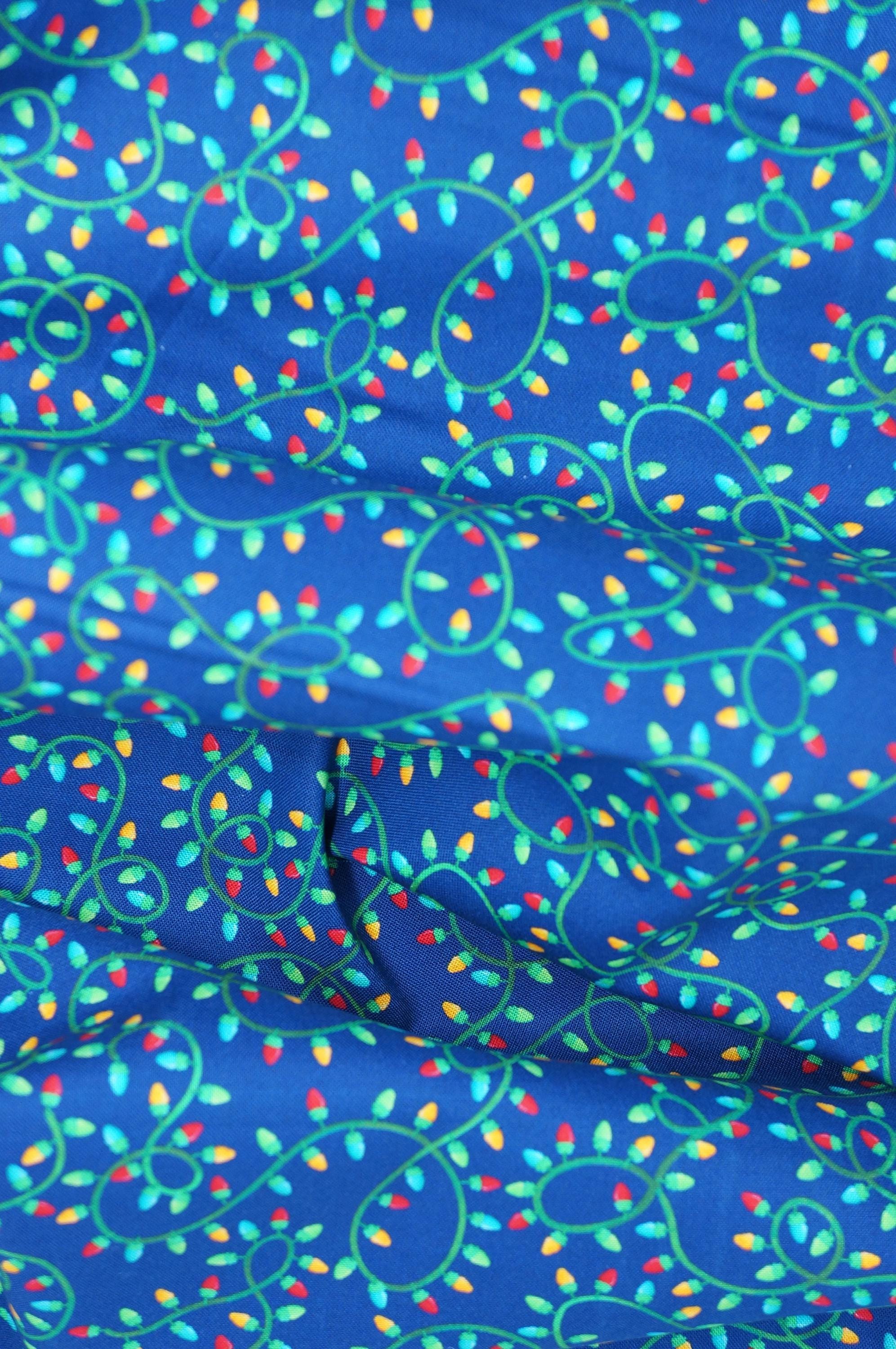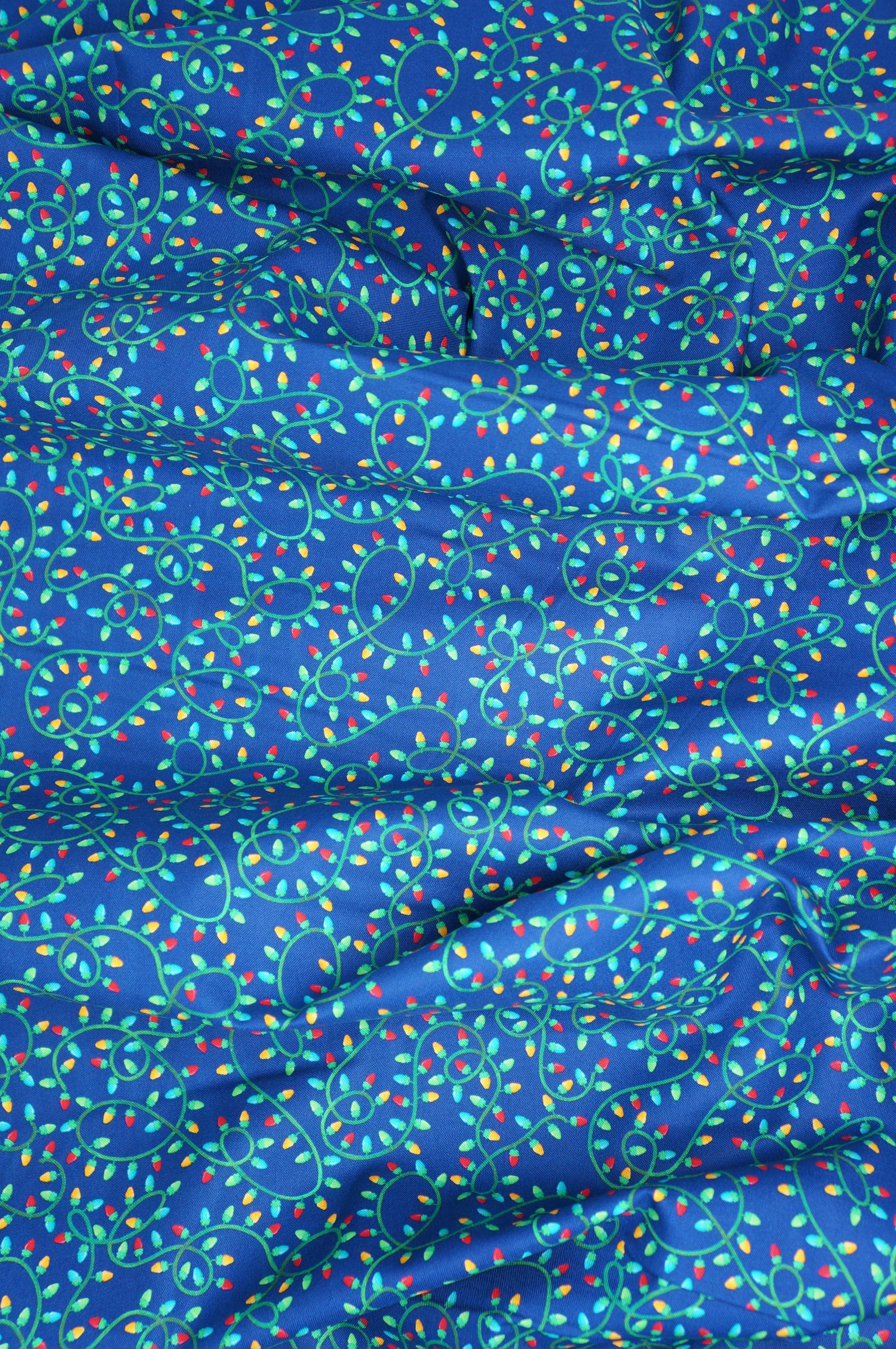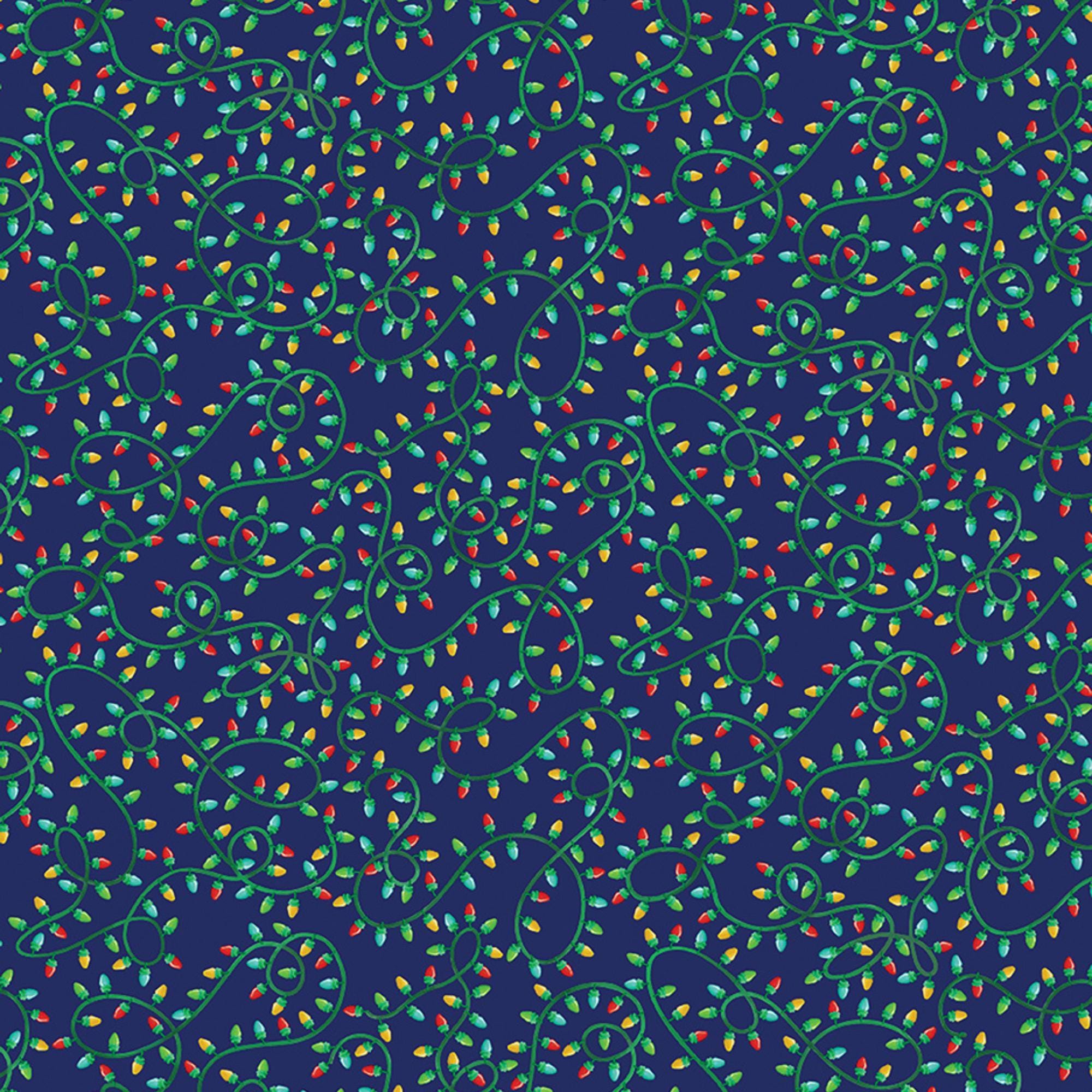 If you love the Christmas and Christmas Lights, you will adore the Holiday Lights on Navy by Andi Metz for Benartex. This festive fabric features multicolored Christmas lights on a twisted green wire on a navy-blue background. This fabric is designed by Andi Metz and is part of her Happy Llamadays Collection that celebrates the joy and fun of Christmas. Whether you make a quilt, a pillow, or a table runner, this fabric will brighten up your home with holiday cheer!