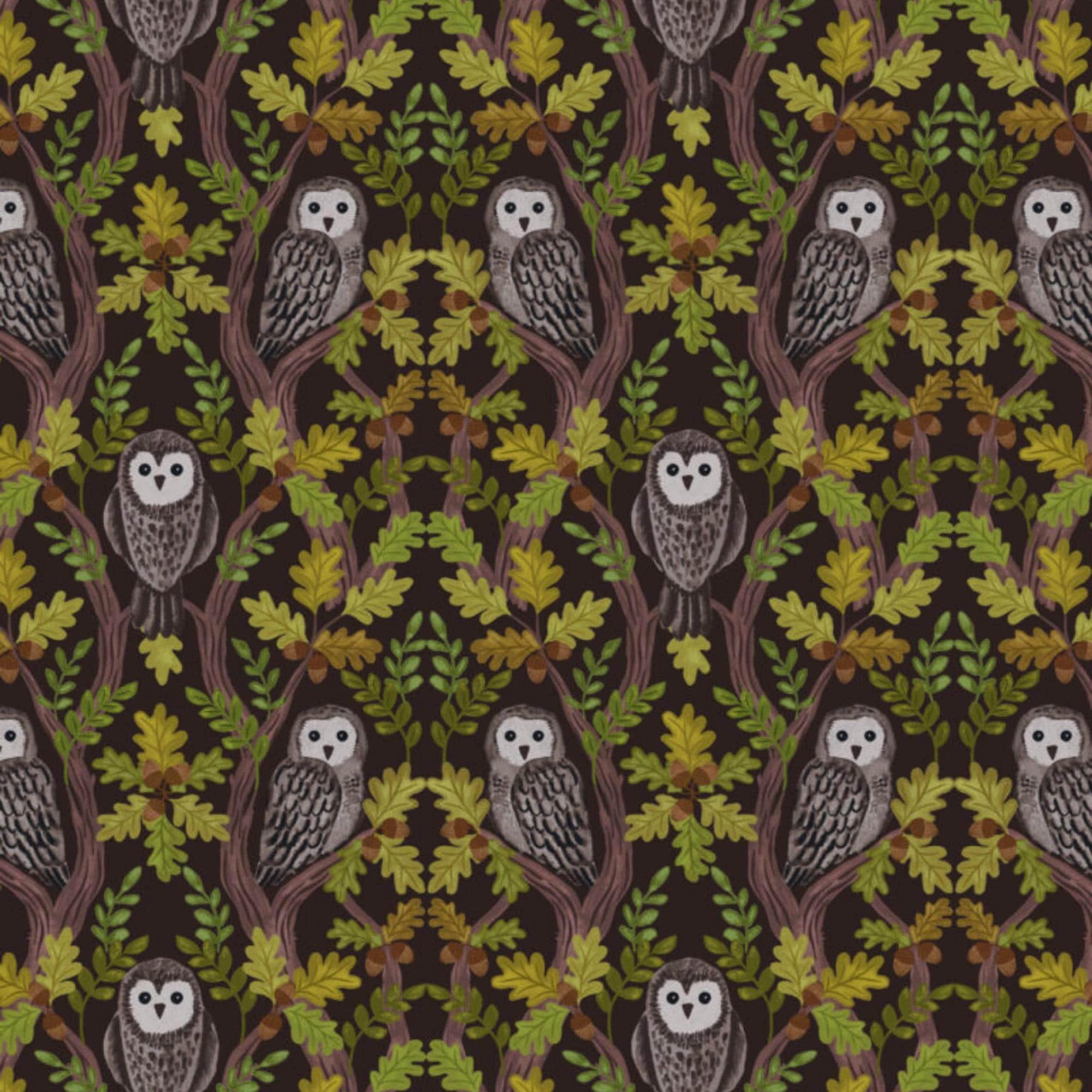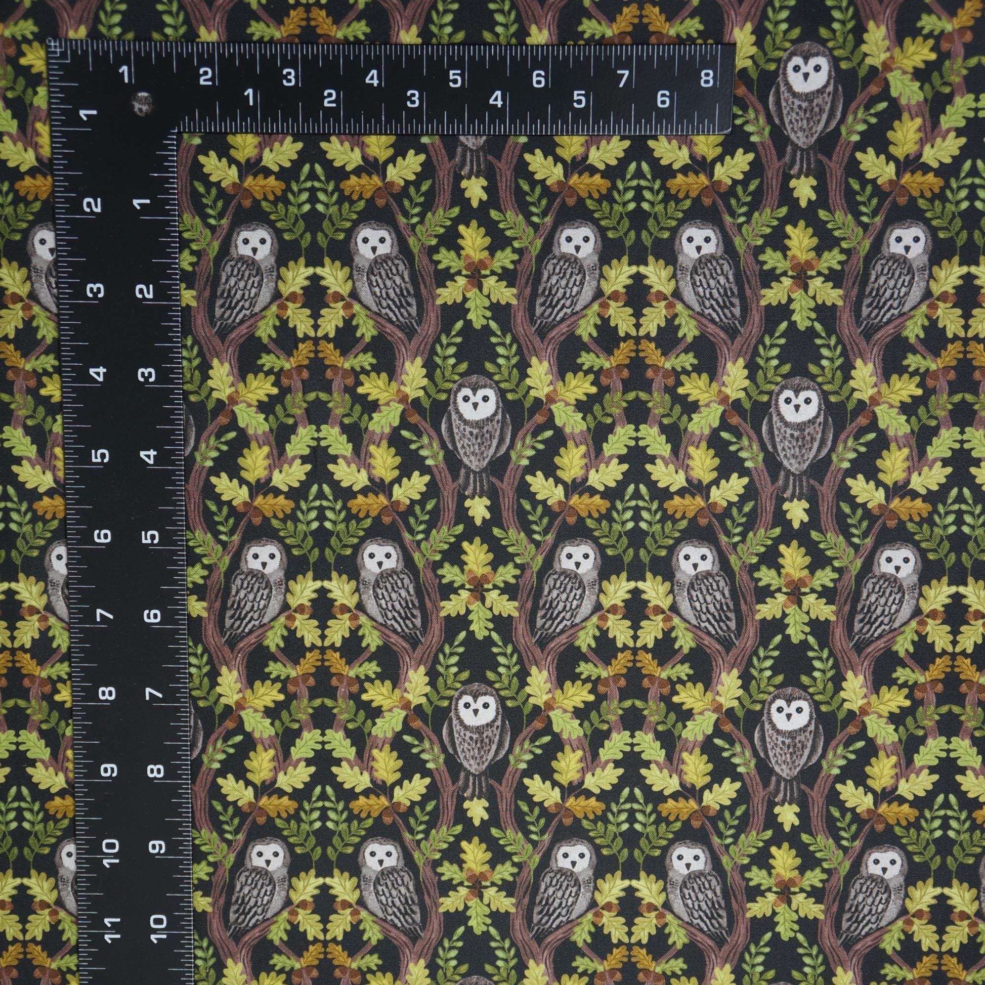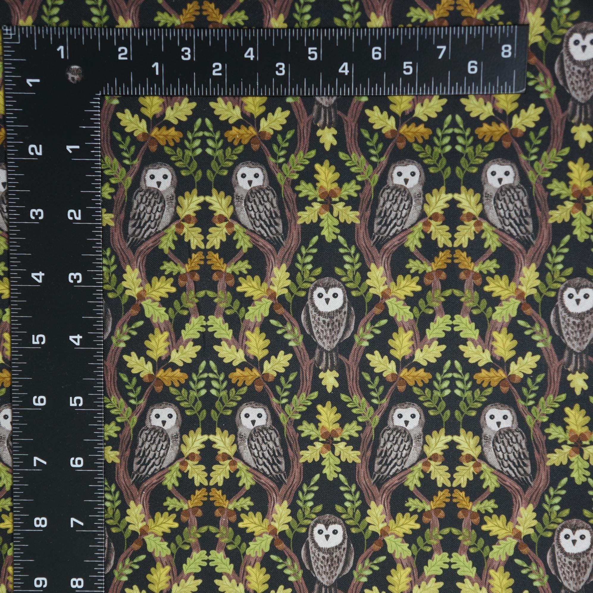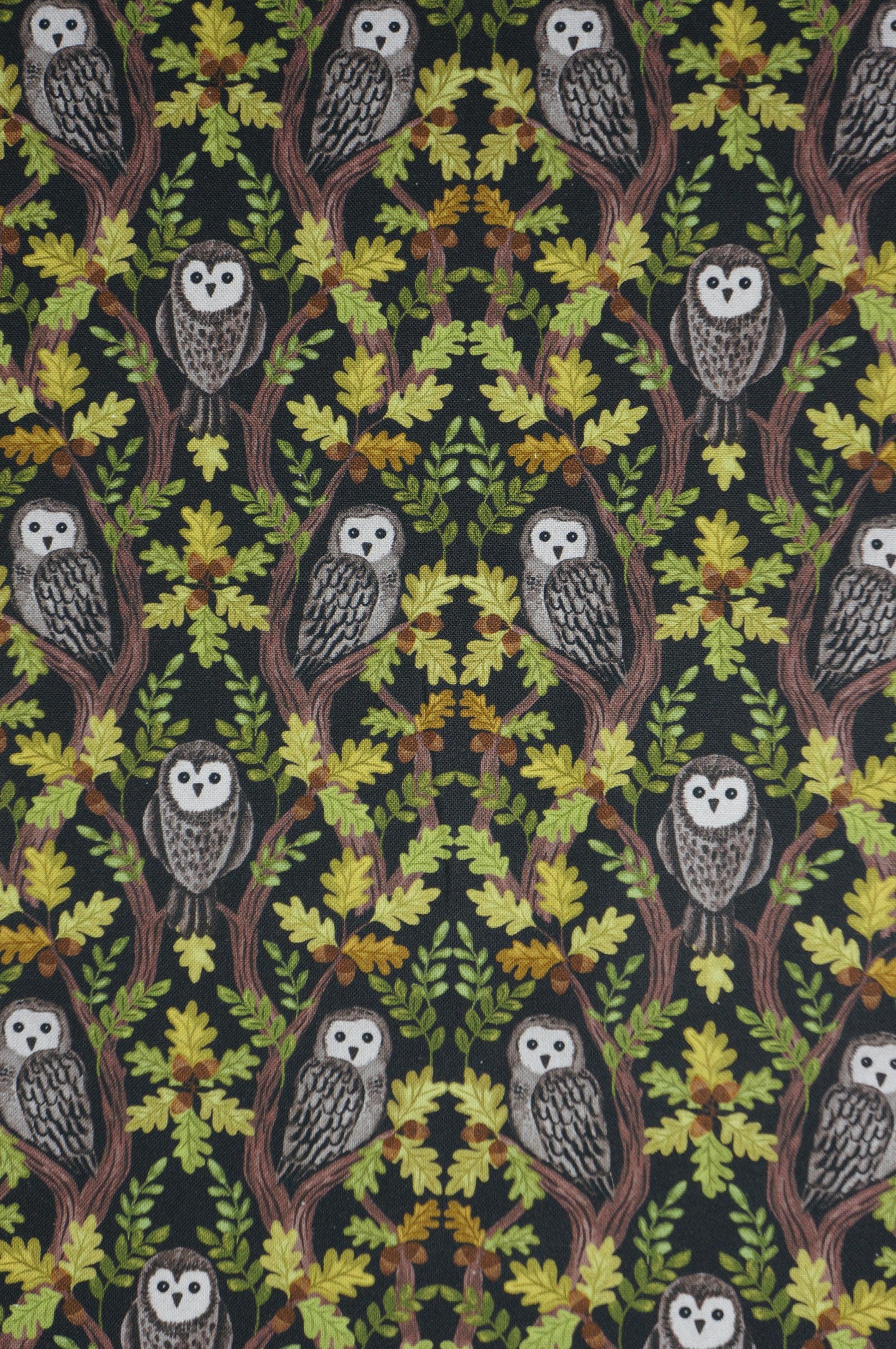 If you love owls and nature, you will adore this owl quilting cotton fabric designed by the designers at Lewis & Irene for their Old Quercus Collection! This quilting cotton fabric features a whimsical print of owls sitting on oak branches (Quercus*) among the fall leaves and acorns on a very dark oak brown background. This fabric is perfect for making quilts, pillows, bags, curtains, and more. Made of 100% cotton is buttery soft, durable, and easy to sew with. Add some charm and magic to your sewing projects with this owl fabric from Lewis & Irene!