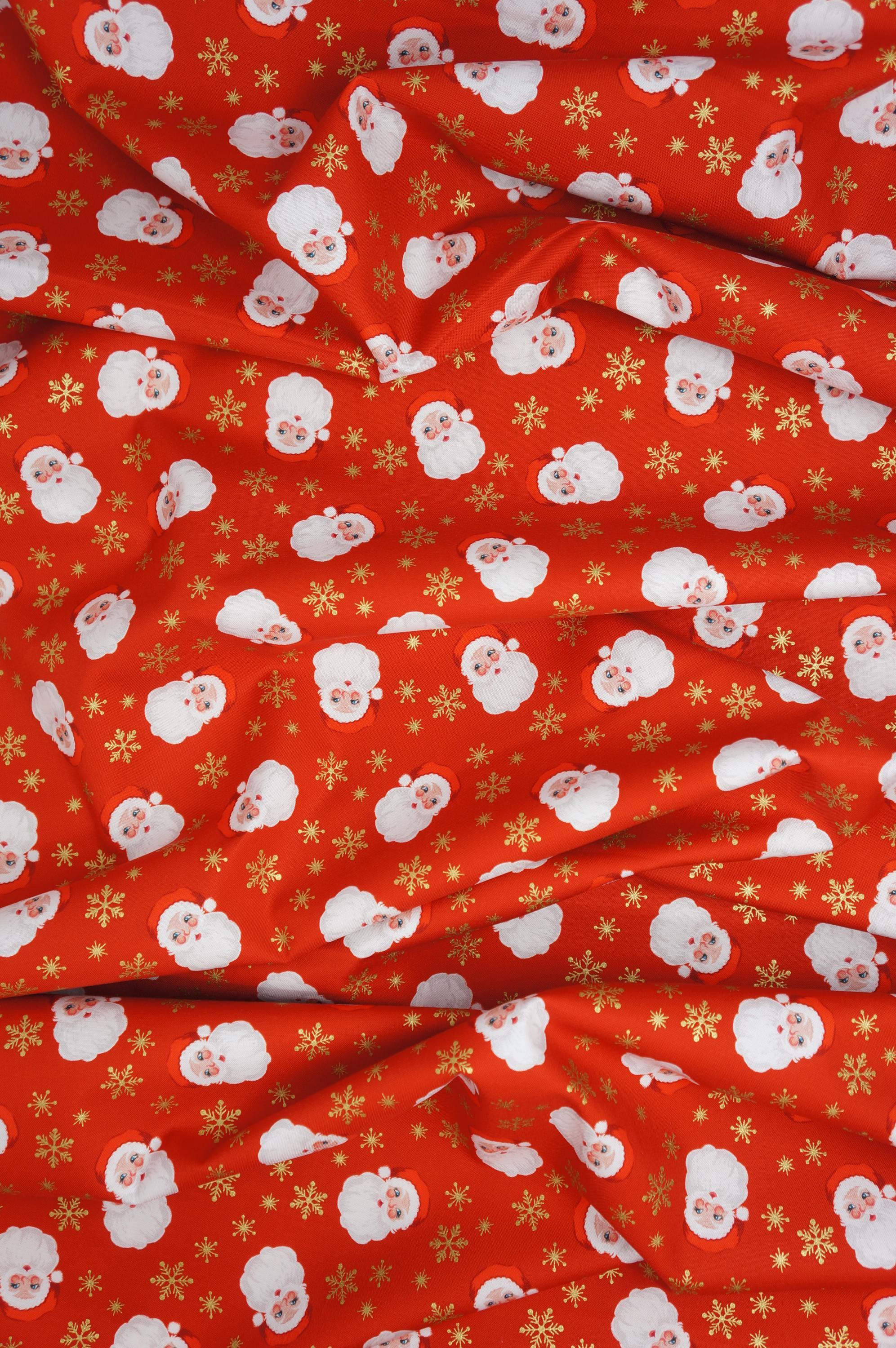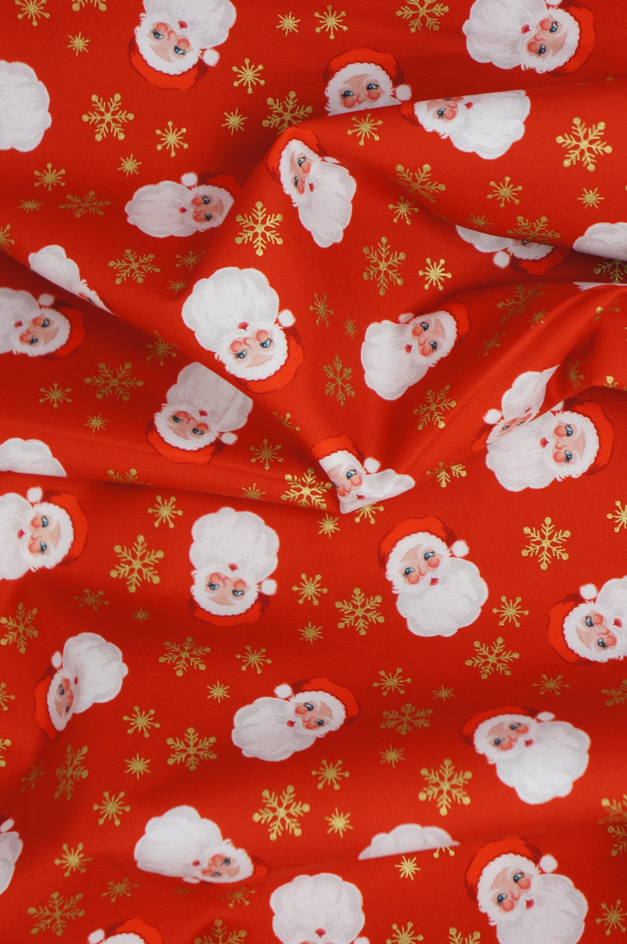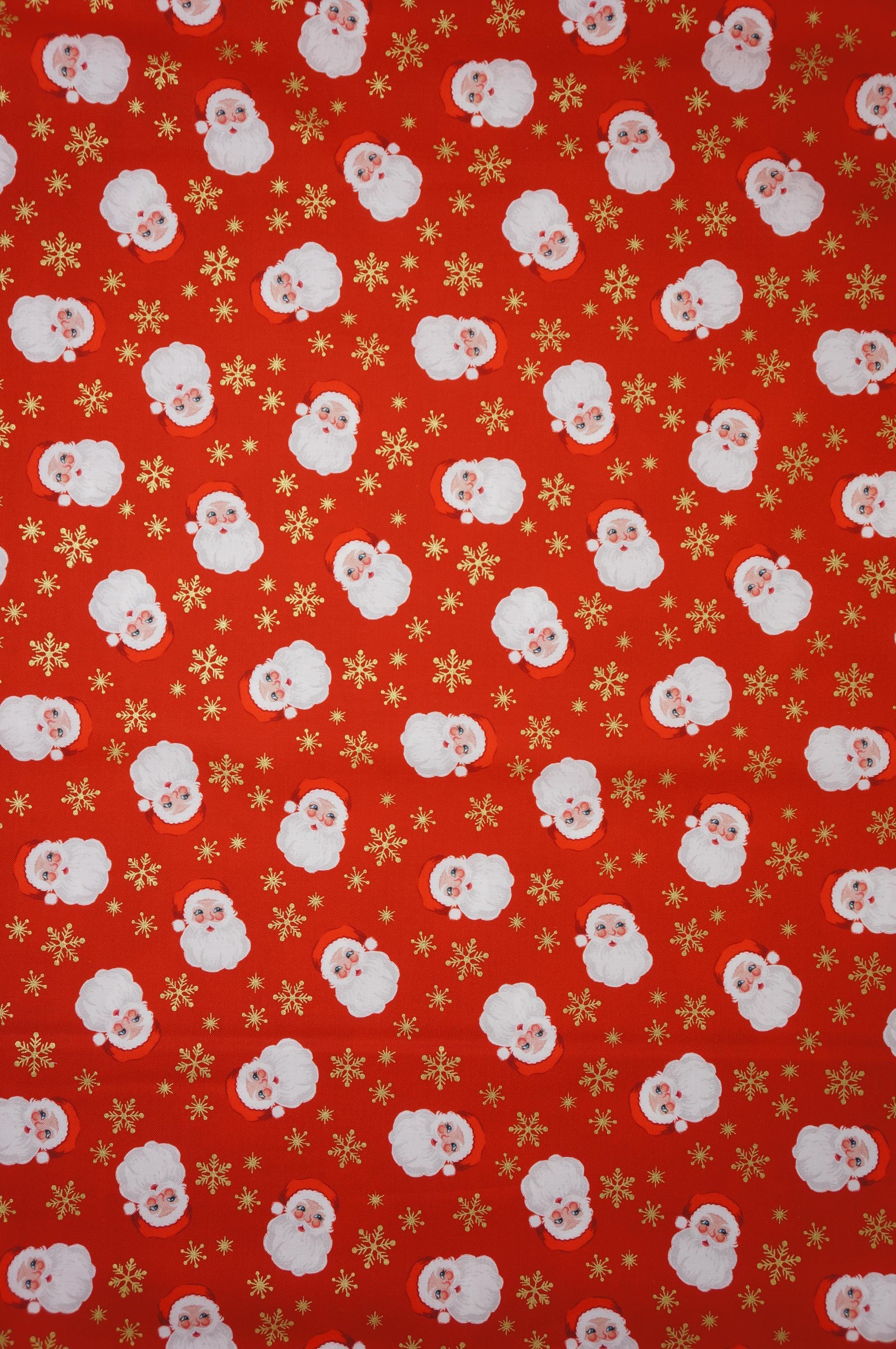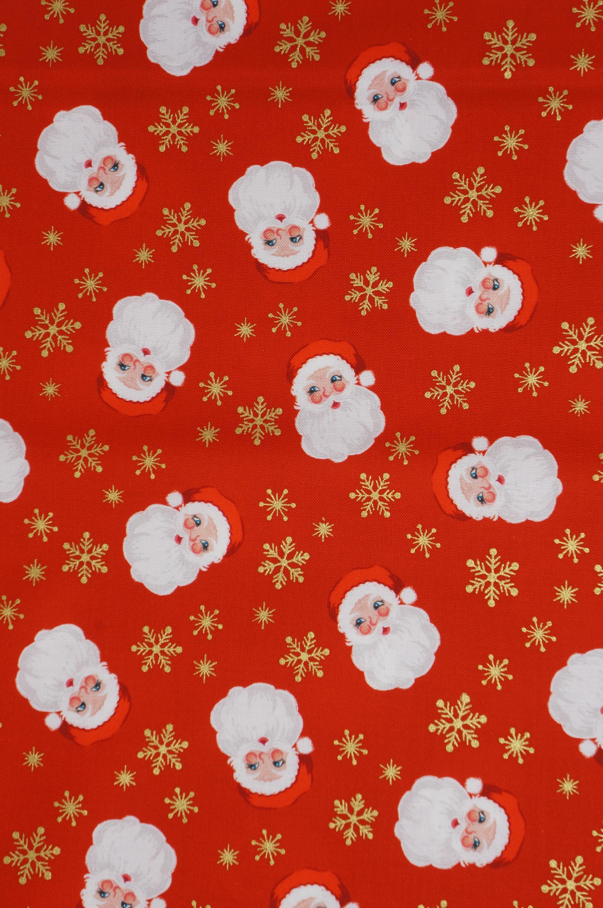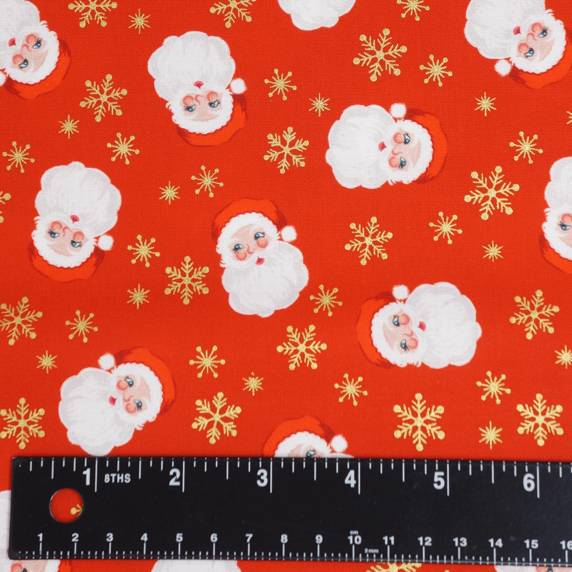If you love Christmas and sewing, you will adore this quilting cotton fabric! Santa on Red from the "Oh Christmas Tree!" Collection by Lewis and Irene is a festive and fun print that features tossed Santa heads and gold metallic snowflakes on a red background. This fabric is perfect for making quilts, pillows, table runners, stockings, and more. It is 100% cotton and easy to work with. You can mix and match it with other Christmas fabrics from the Lewis & Irene "Oh Christmas Tree!" Collection or use it as a standalone piece. Either way, you will create something beautiful and cheerful with this fabric!