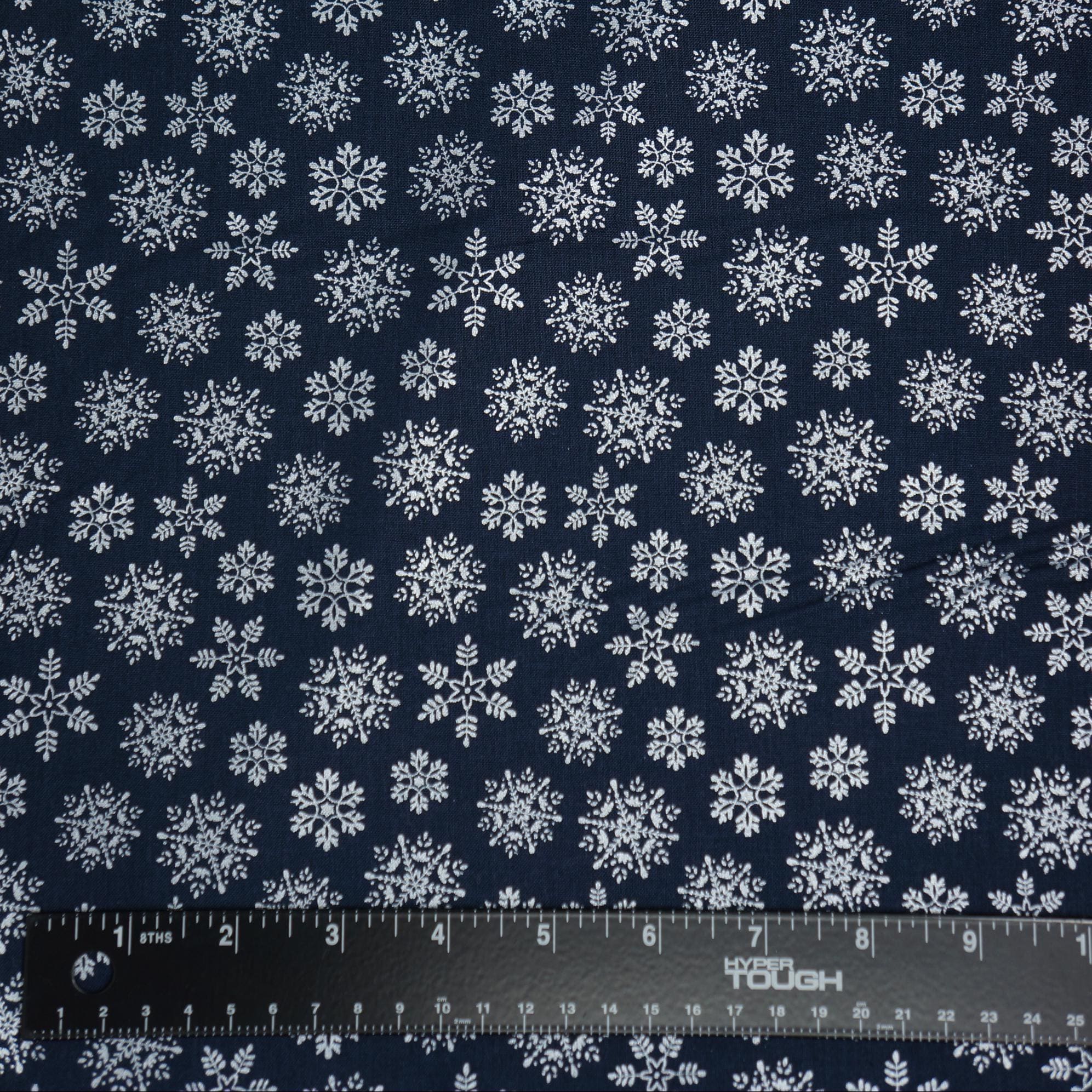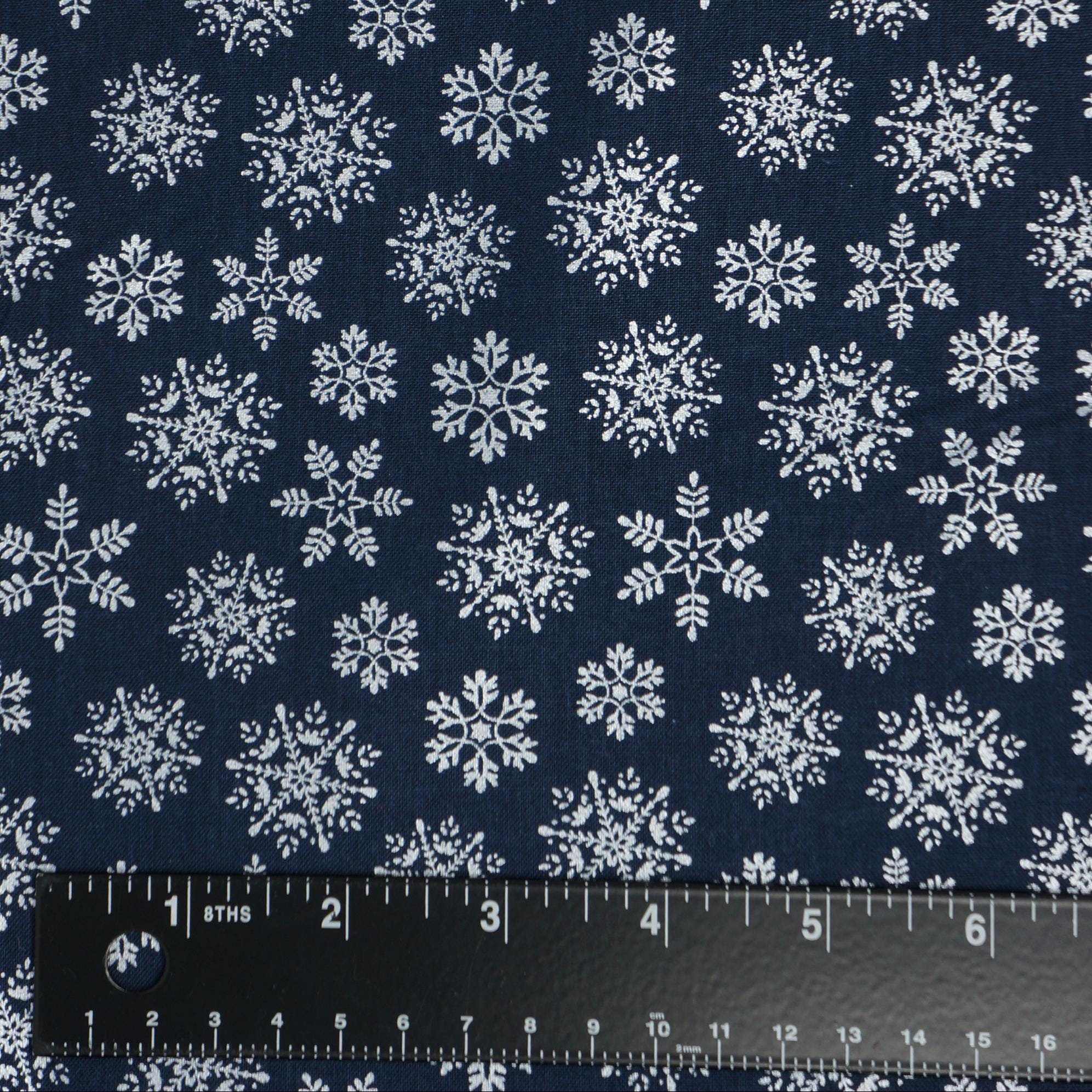 If you love the Christmas and Snowflakes, you will adore the Nordic Silver Snowflake on Navy quilting cotton fabric by Cherry Guidry for Benartex Contempo. This festive fabric features intricate, multi-sized silver metallic snowflakes on a navy background. This fabric is designed by Cherry Guidry and is part of her Nordic Cabin Collection that celebrates the joy and fun of Christmas. Whether you make a quilt, a pillow, or a table runner, this fabric will brighten up your home with holiday cheer!