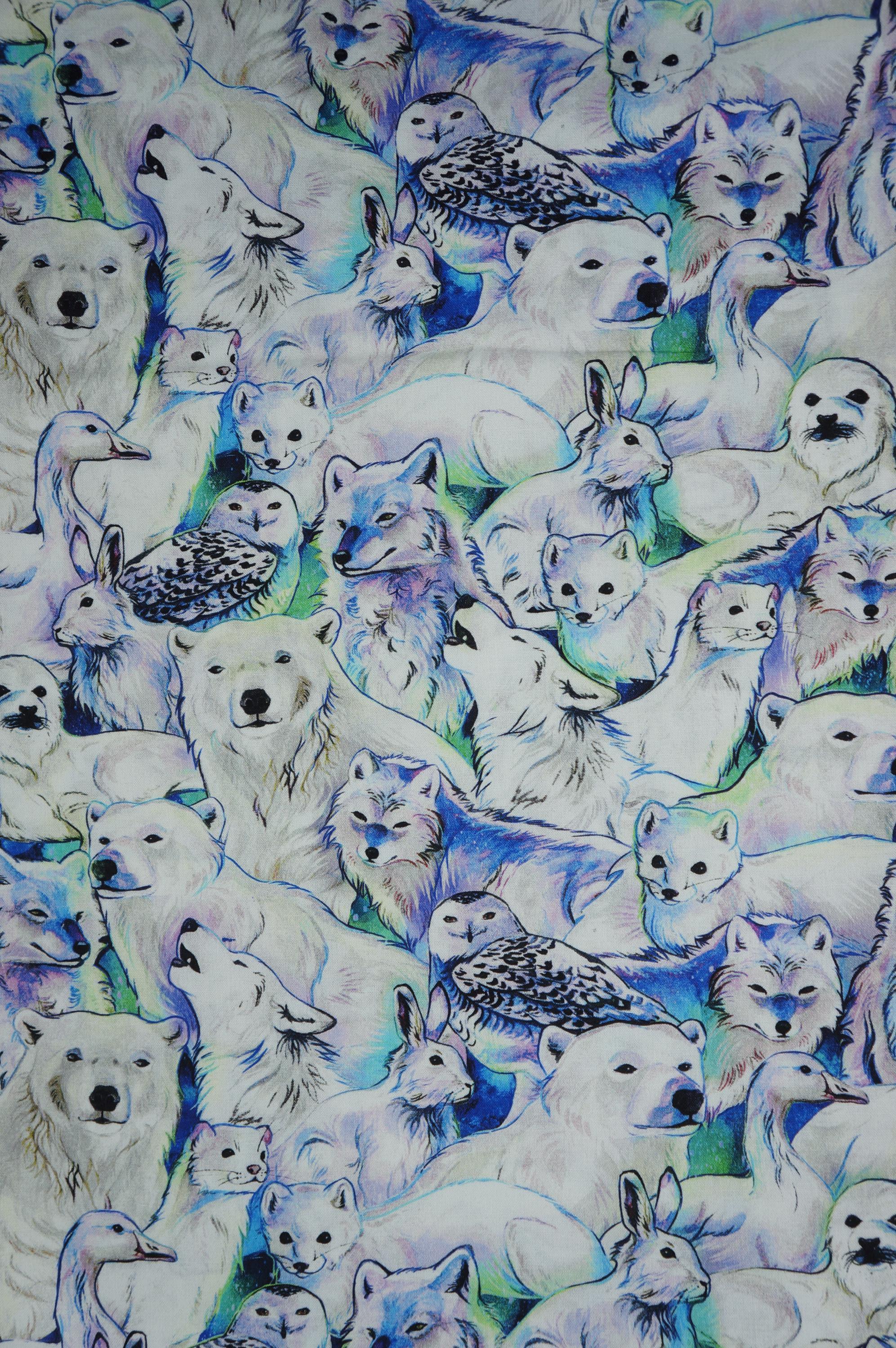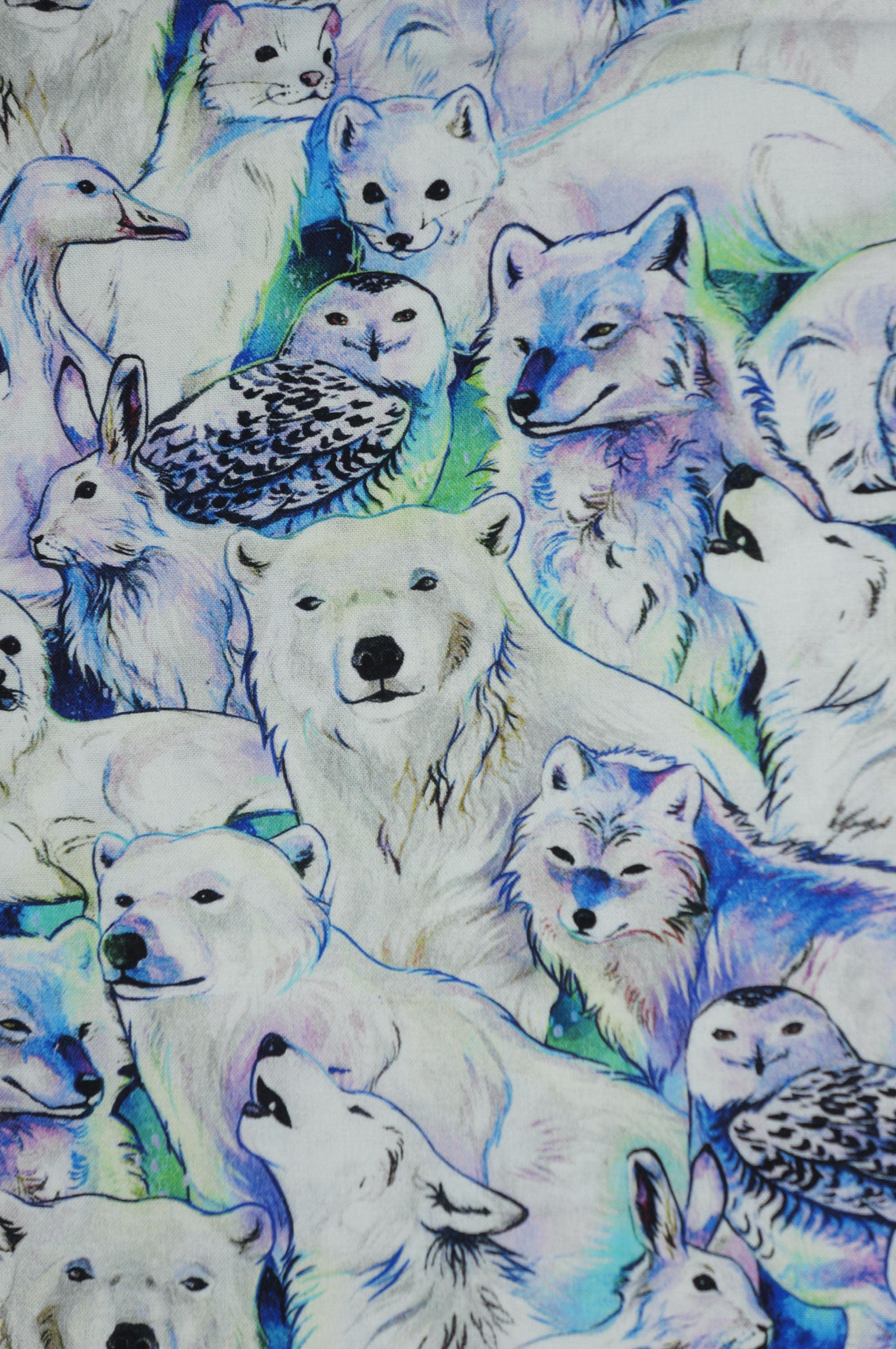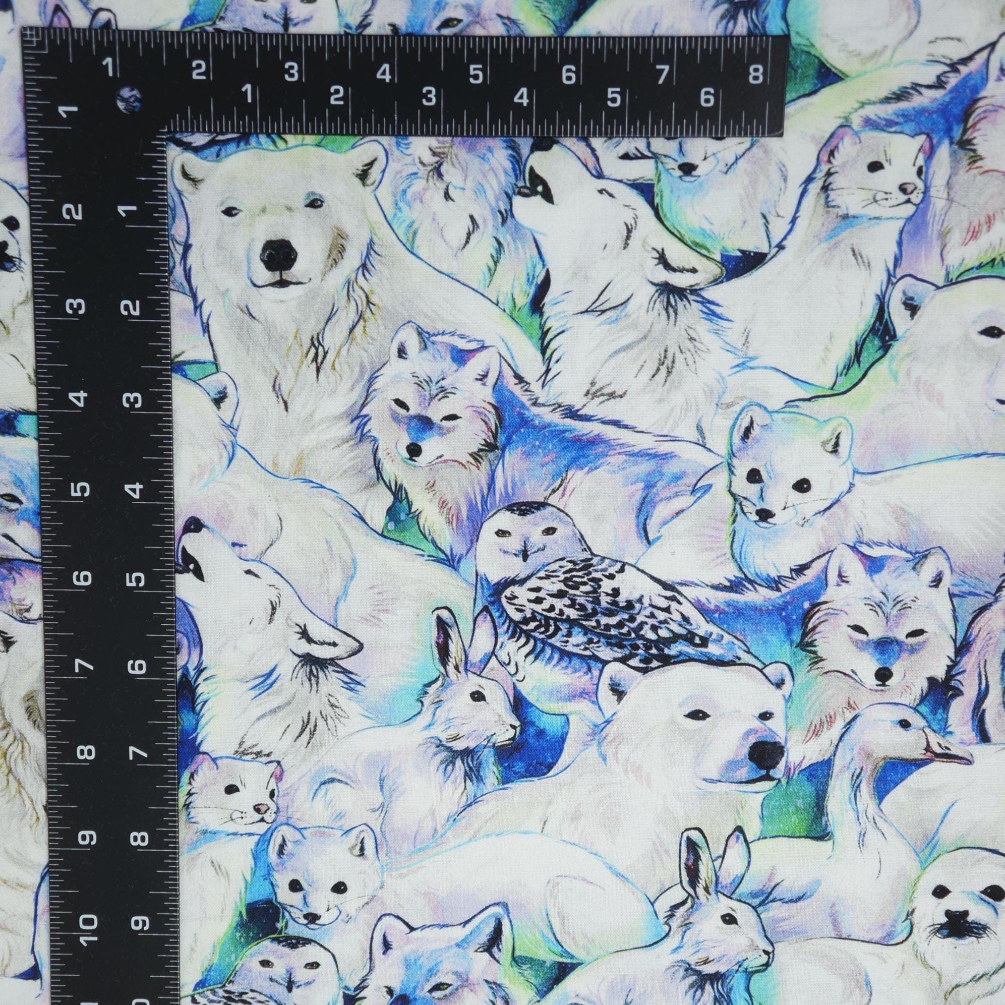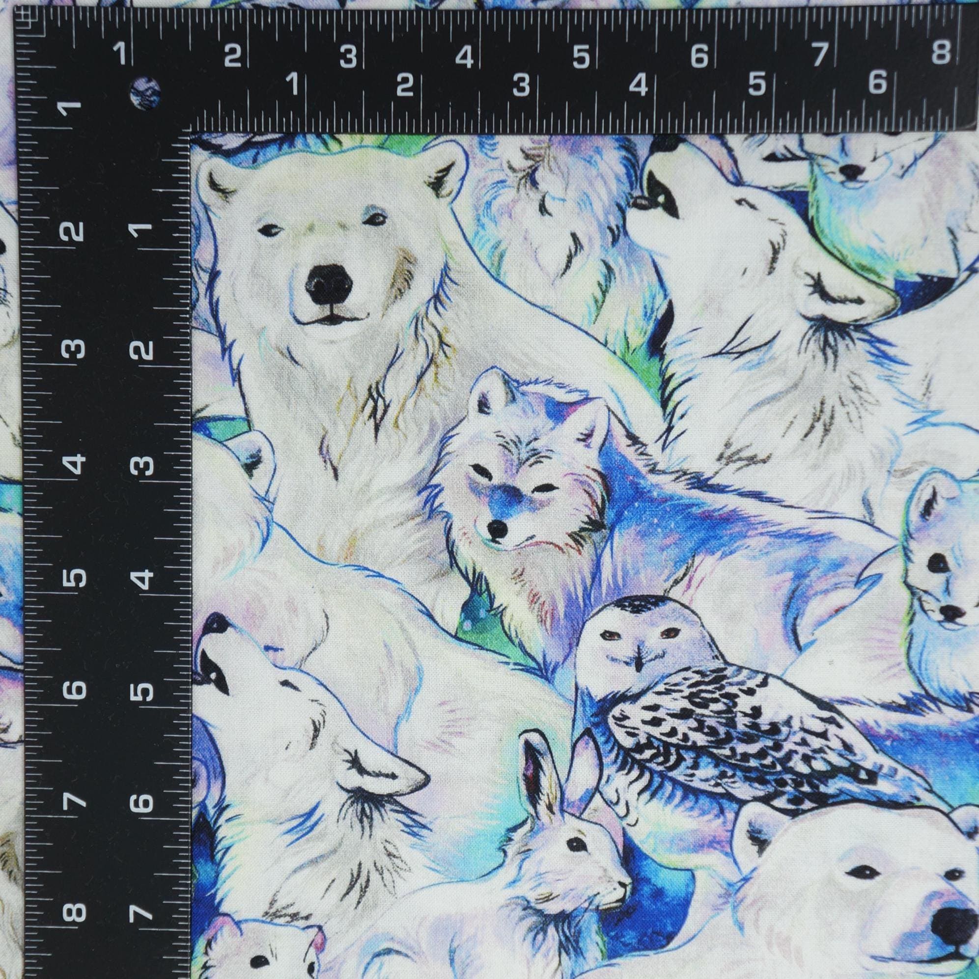 If you love the tundra animals, you'll adore this digitally printed quilting cotton fabric from the Studio E's "Tales of the Tundra" Collection by Katy Lipscomb! This enchanting fabric features an array of Arctic wildlife, including polar bears, wolves, owls, and rabbits, all illustrated in a whimsical, colorful style against a backdrop of soft pastel hues. The design repeats every 11 inches, creating a delightful pattern that captures the essence of the tundra in a playful and engaging manner. Perfect for crafting projects that require a touch of nature's magic, this fabric's vibrant depiction of animals in their natural habitat adds a unique charm to any creation.