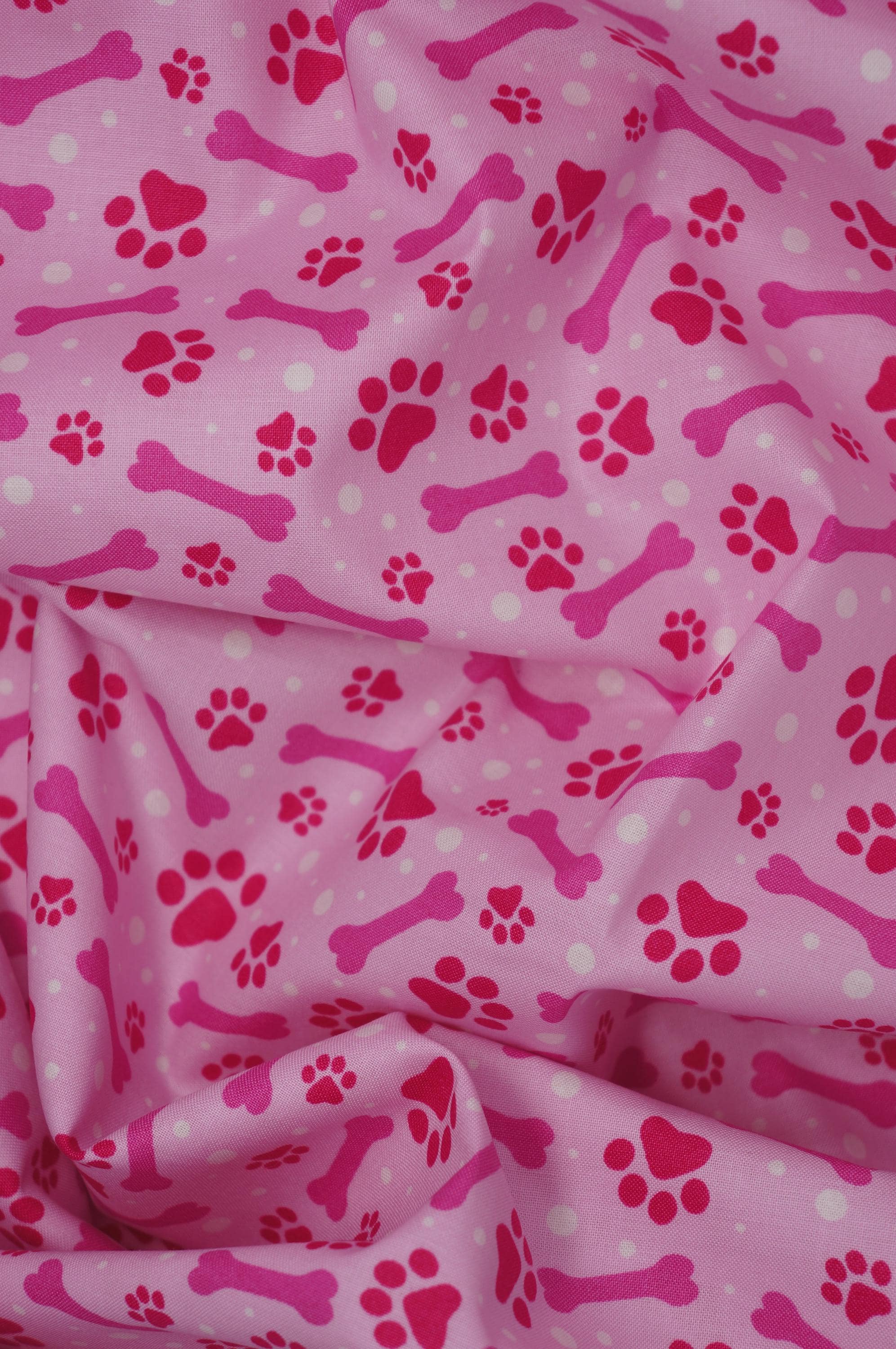 If you love dogs and cute prints, you will adore this Paws and Bones Cotton Novelty Fabric by David Textiles! This vibrant fabric features a playful design with dark pink paw prints and bones scattered across a bright pink background, accented by small white dots. Ideal for pet lovers, this fabric's cheerful pattern makes it perfect for creating fun and whimsical projects, from children's clothing to pet accessories. This fabric is perfect for any dog lover or anyone who wants to add some fun and charm to their projects. Order this fabric today and unleash your creativity!
