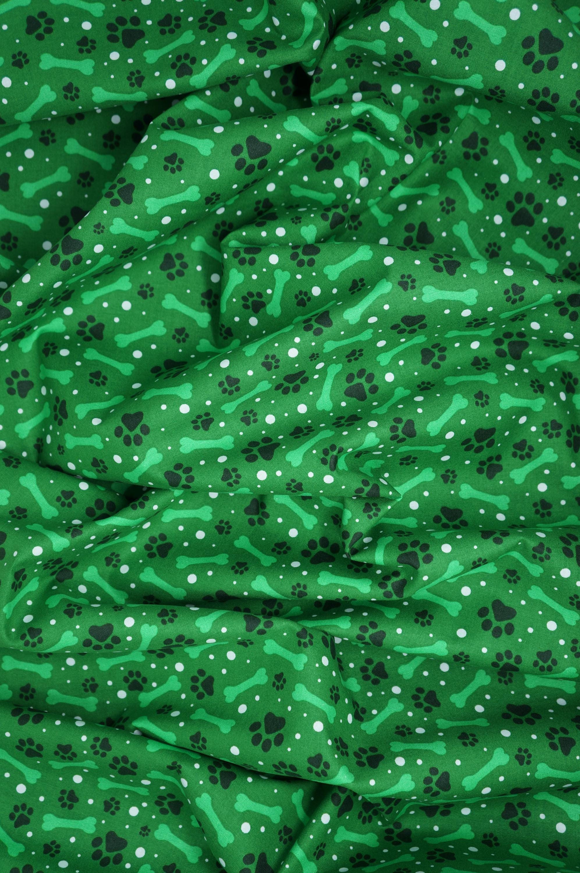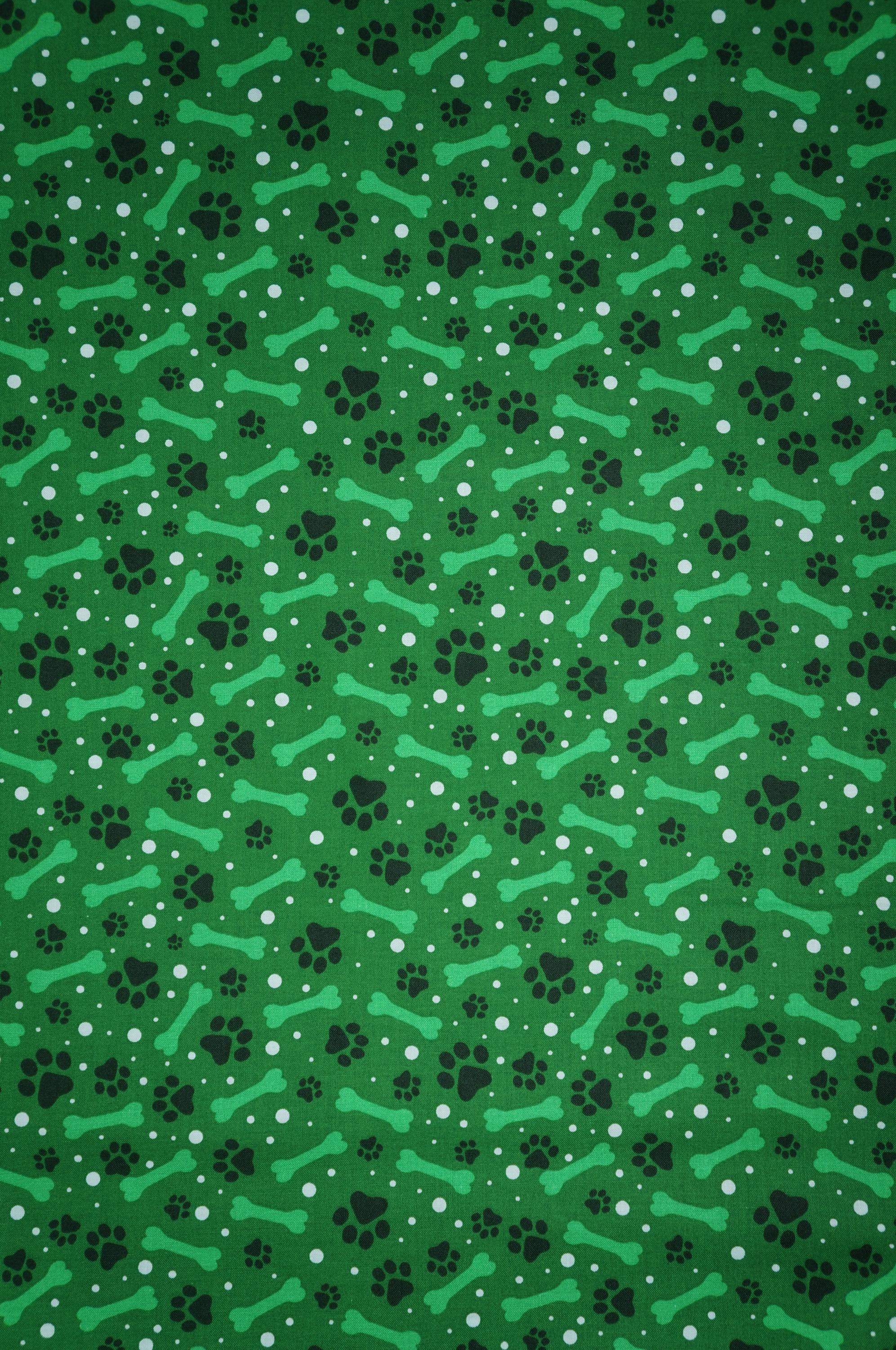 If you love dogs and cute prints, you will adore this Paws and Bones Cotton Novelty Fabric by David Textiles! This vibrant fabric features a playful design with green paw prints and bones scattered across a green background, accented by small white dots. Ideal for pet lovers, this fabric's cheerful pattern makes it perfect for creating fun and whimsical projects, from children's clothing to pet accessories. This fabric is perfect for any dog lover or anyone who wants to add some fun and charm to their projects. Order this fabric today and unleash your creativity!