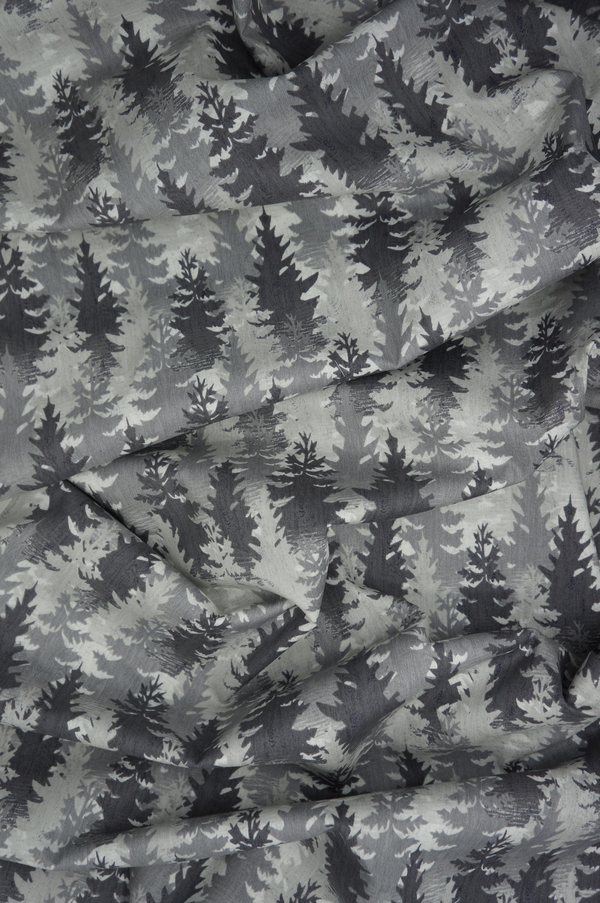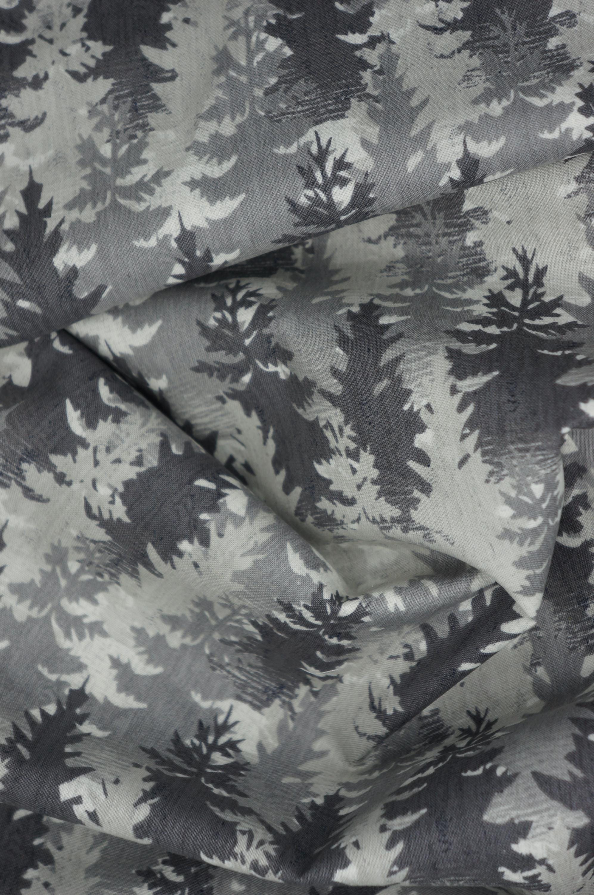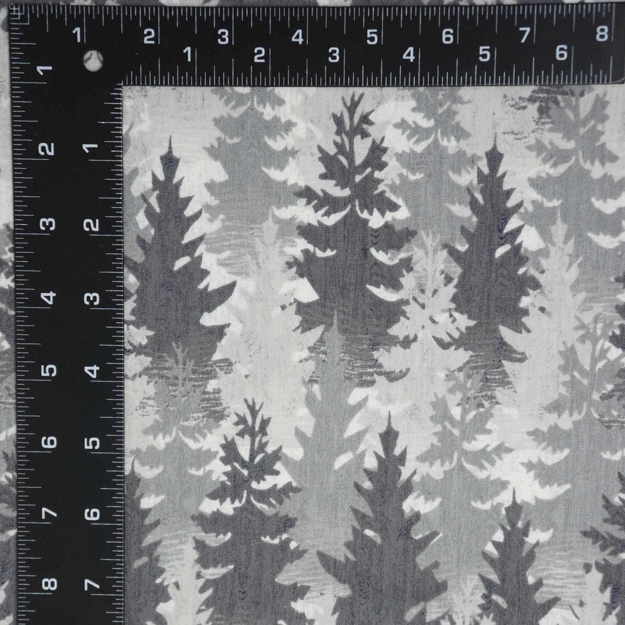 If you love landscapes, you'll adore this quilting cotton fabric from the Wilmington Prints' "Lake Retreat" Collection by PDR LLC! This fabric features an enchanting allover design of silhouettes of forest trees, with a soft ombre effect that brings a serene and natural ambiance to any project. The pattern showcases varying shades of gray on a white background, creating depth and a sense of misty atmosphere, perfect for crafting items that evoke the tranquility of nature. This fabric is made of 100% cotton and is perfect for quilting, crafts, home decor, nurseries and more. You'll have so much fun creating projects with this whimsical and charming fabric!