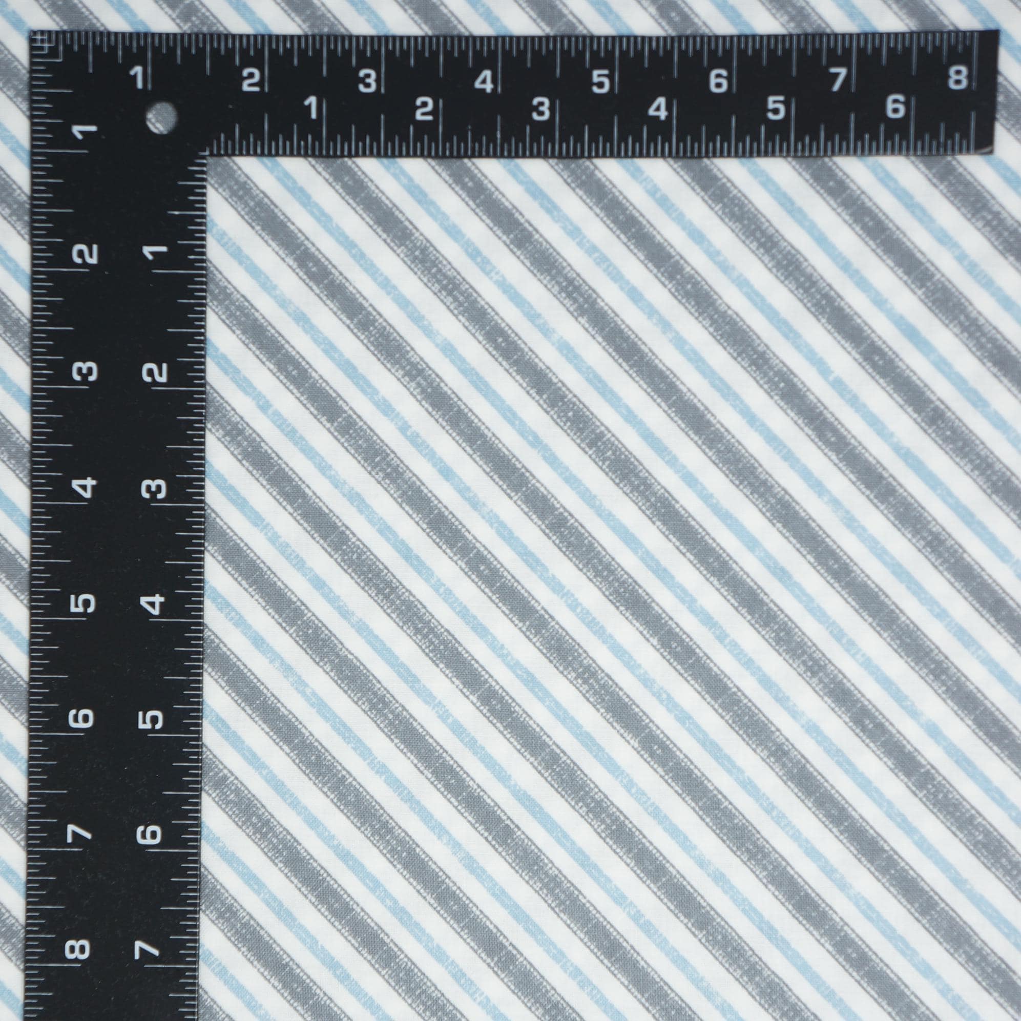 Transform your lake haven into a cozy retreat with our enchanting Blue and White Diagonal Stripe quilting cotton fabric from the Lake Retreat Collection by PDR LLC for Wilmington Prints. This delightful design features textured gray and blue stripes that run on the bias on a white background. Whether you're stitching up cushions, quilts, or tote bags, this fabric embodies the essence of Lake Life bliss. Dive into creativity and infuse your space with the tranquil vibes of Lake Retreat, making every day feel like a lake getaway.
