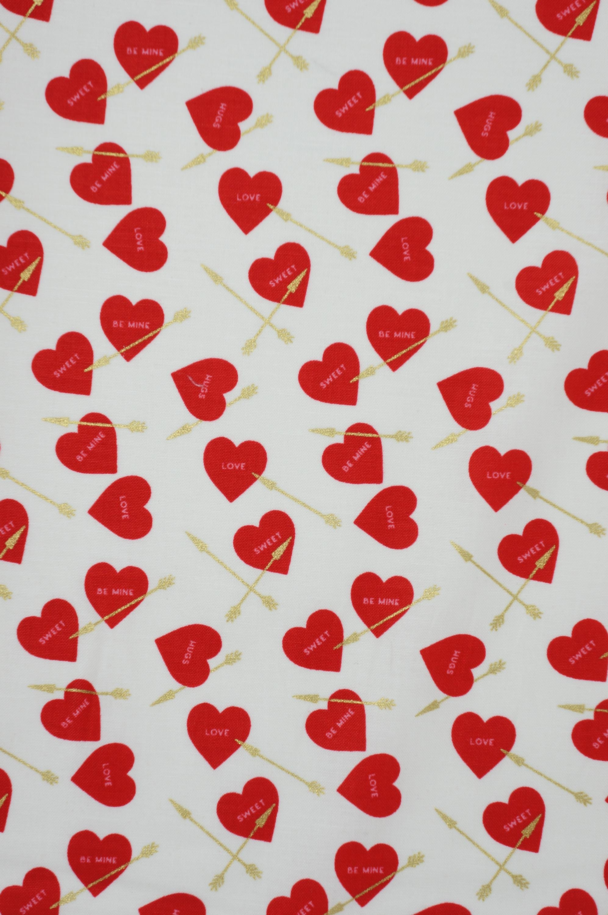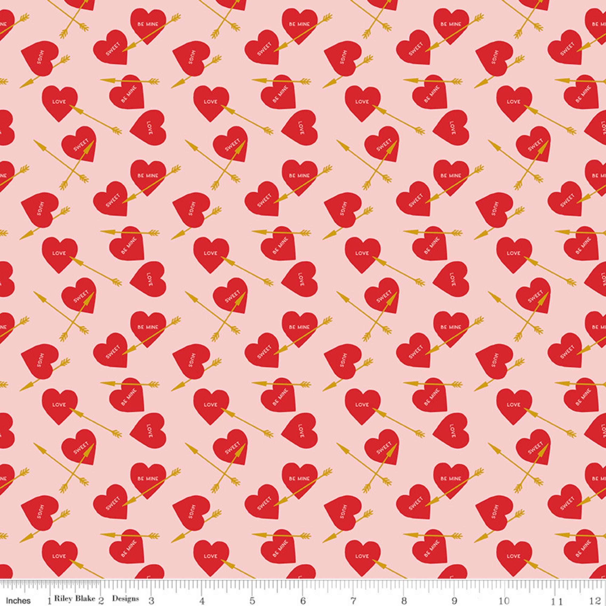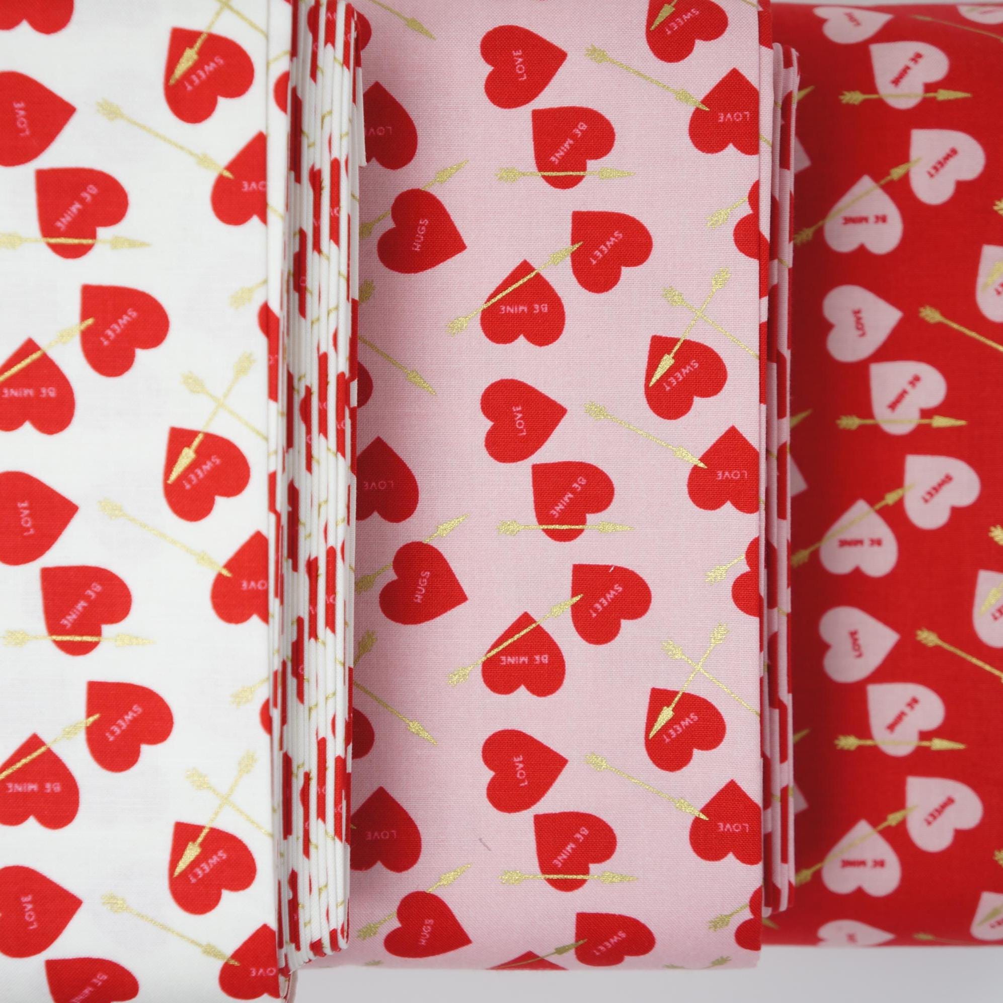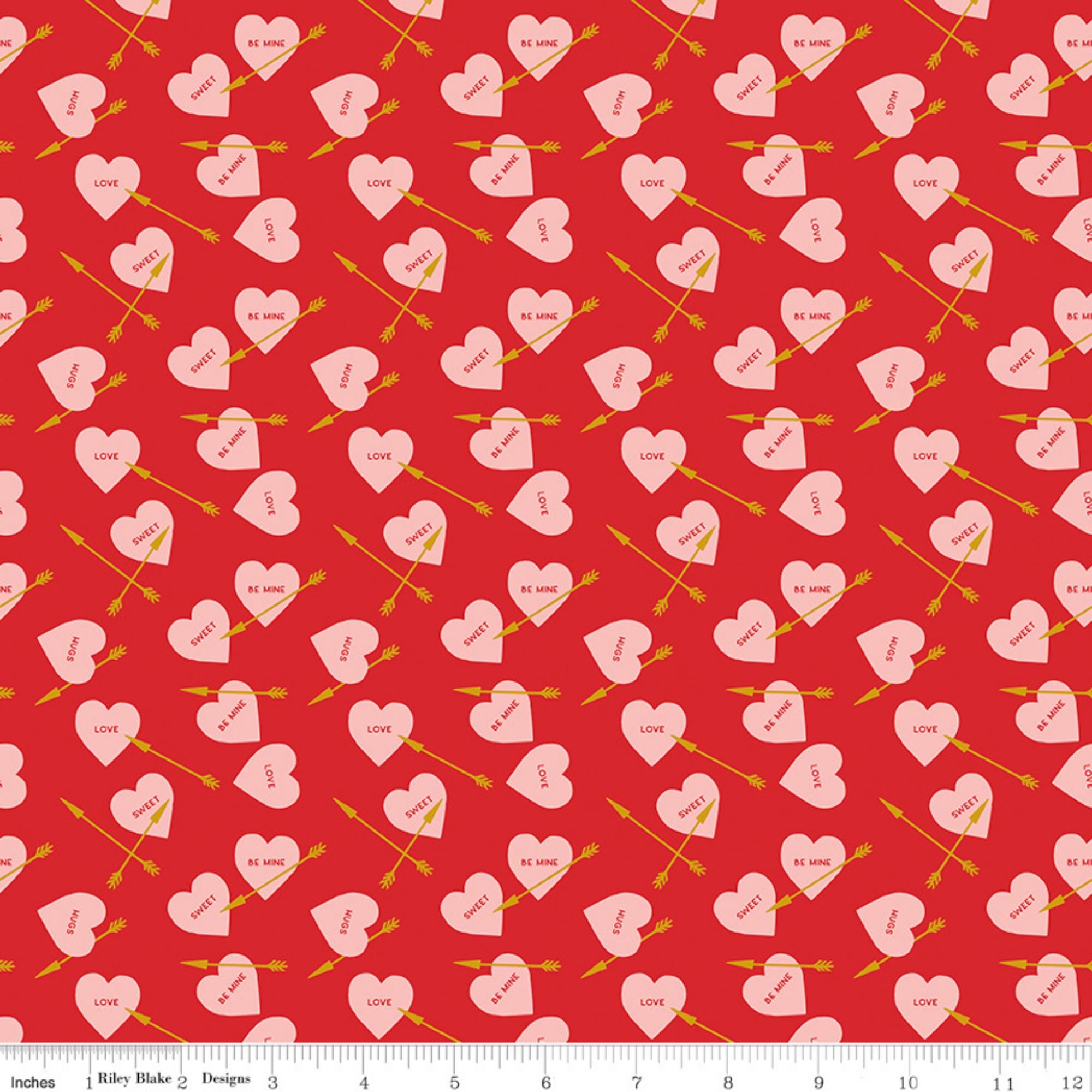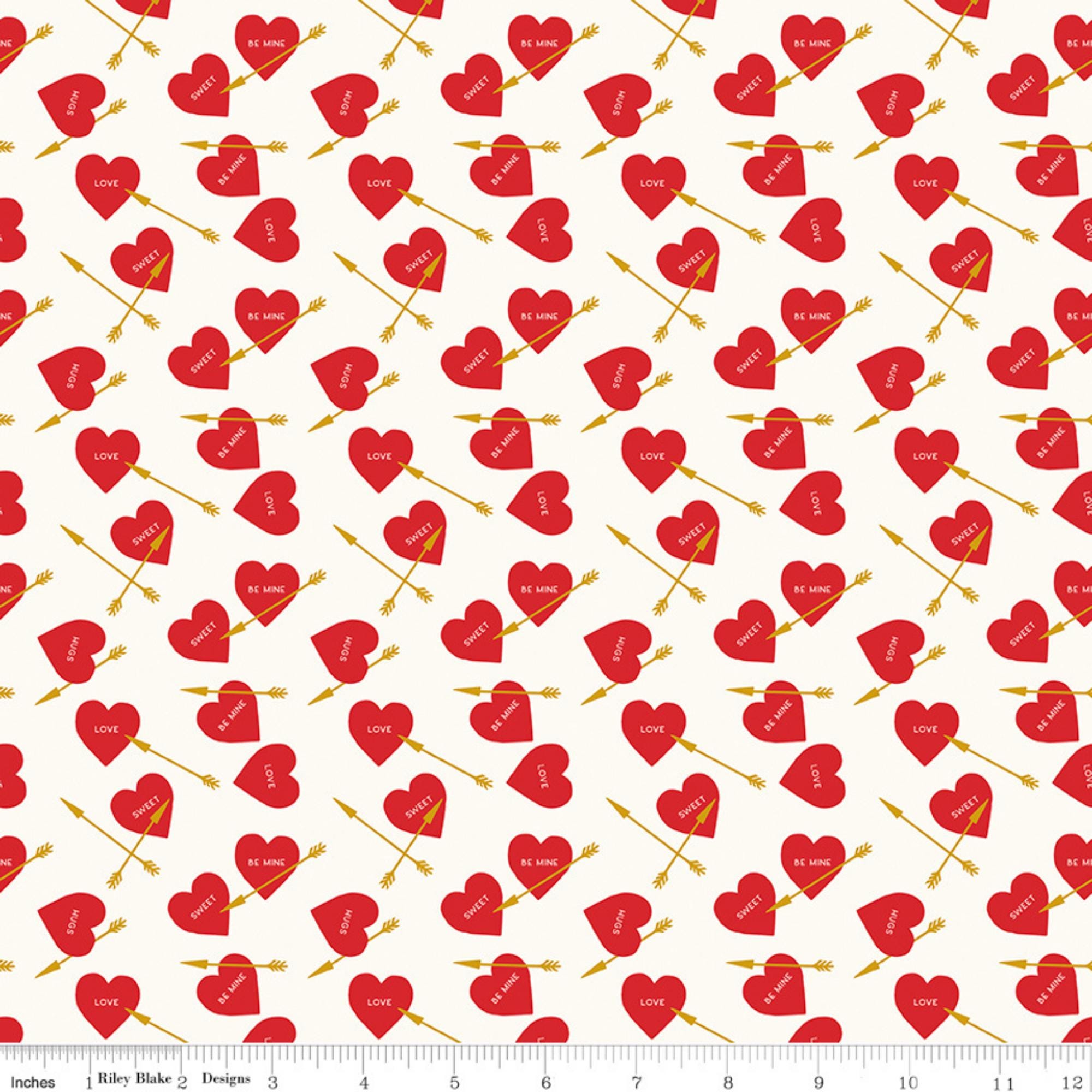 Elevate your creativity with our Heart Arrows on White, Pink or Red quilting cotton fabric from the Sweetheart collection by My Mind's Eye for Riley Blake Designs. This versatile quilting cotton is perfect for quilting, apparel, and home decor. The design features conversation hearts with gold metallic arrows on a cream, pink or red background. Ideal for Valentine's Day projects and beyond, this high-quality fabric ensures durability and a soft feel. Get creative with Riley Blake – order now and let your imagination soar!