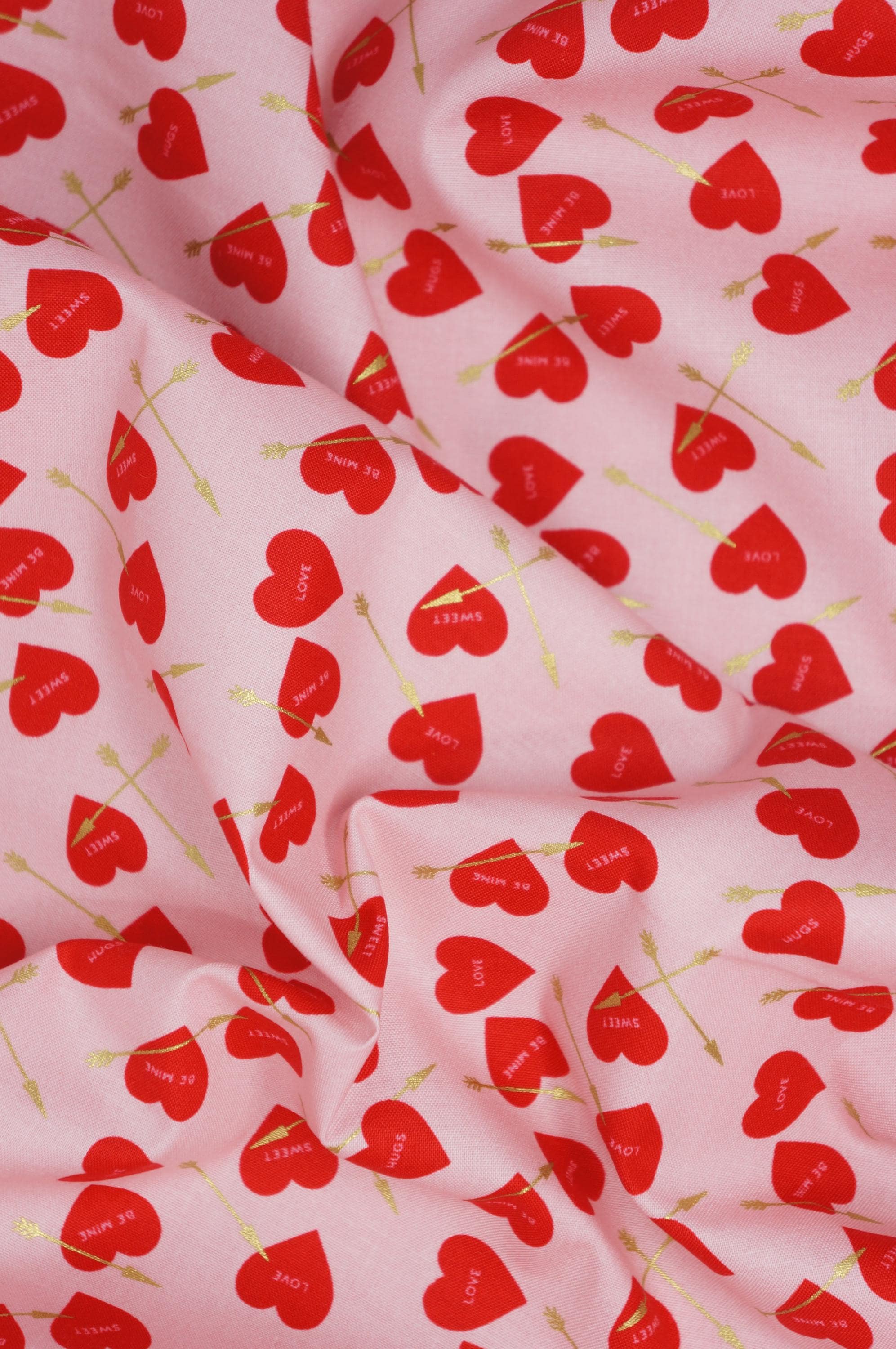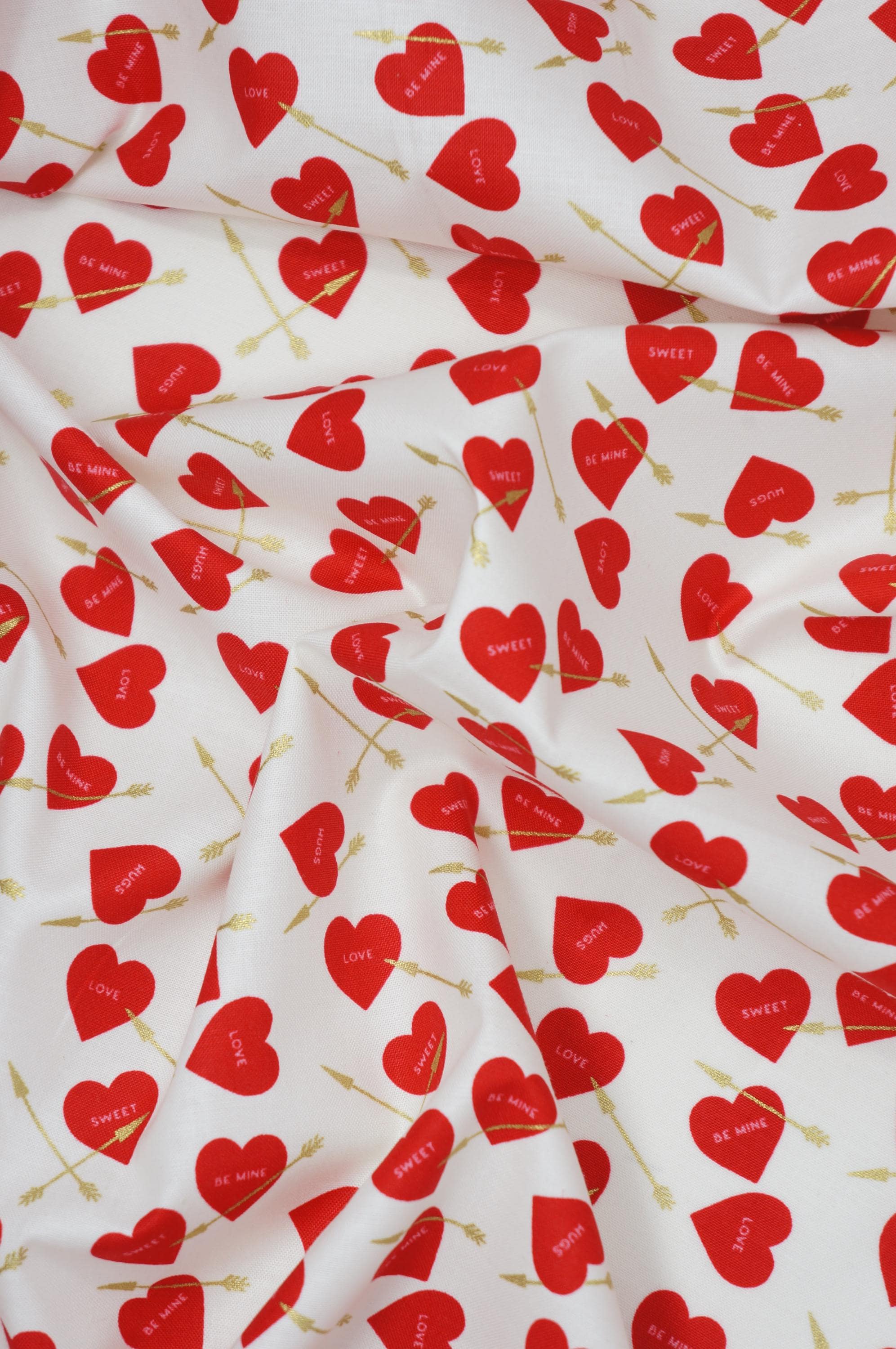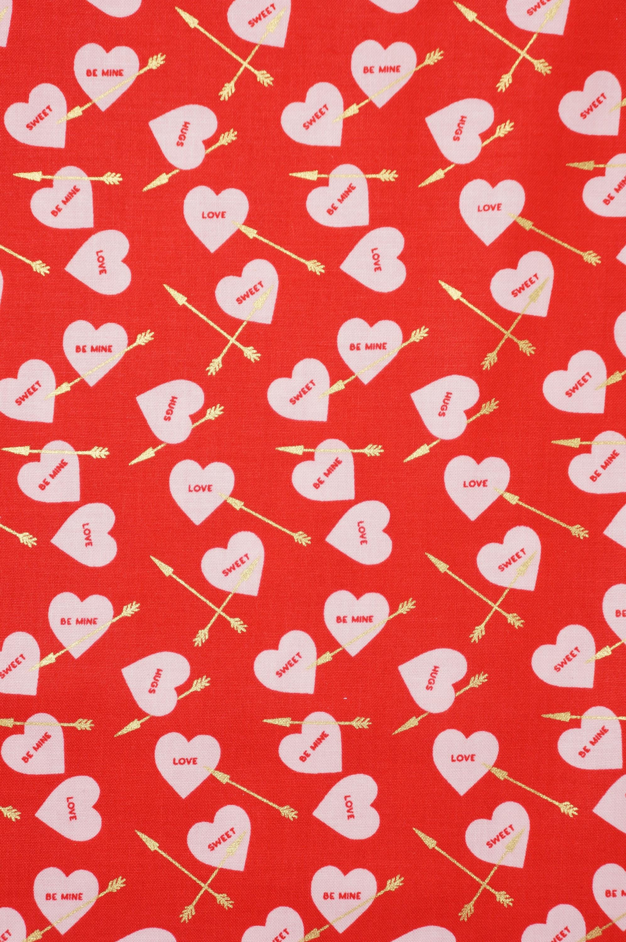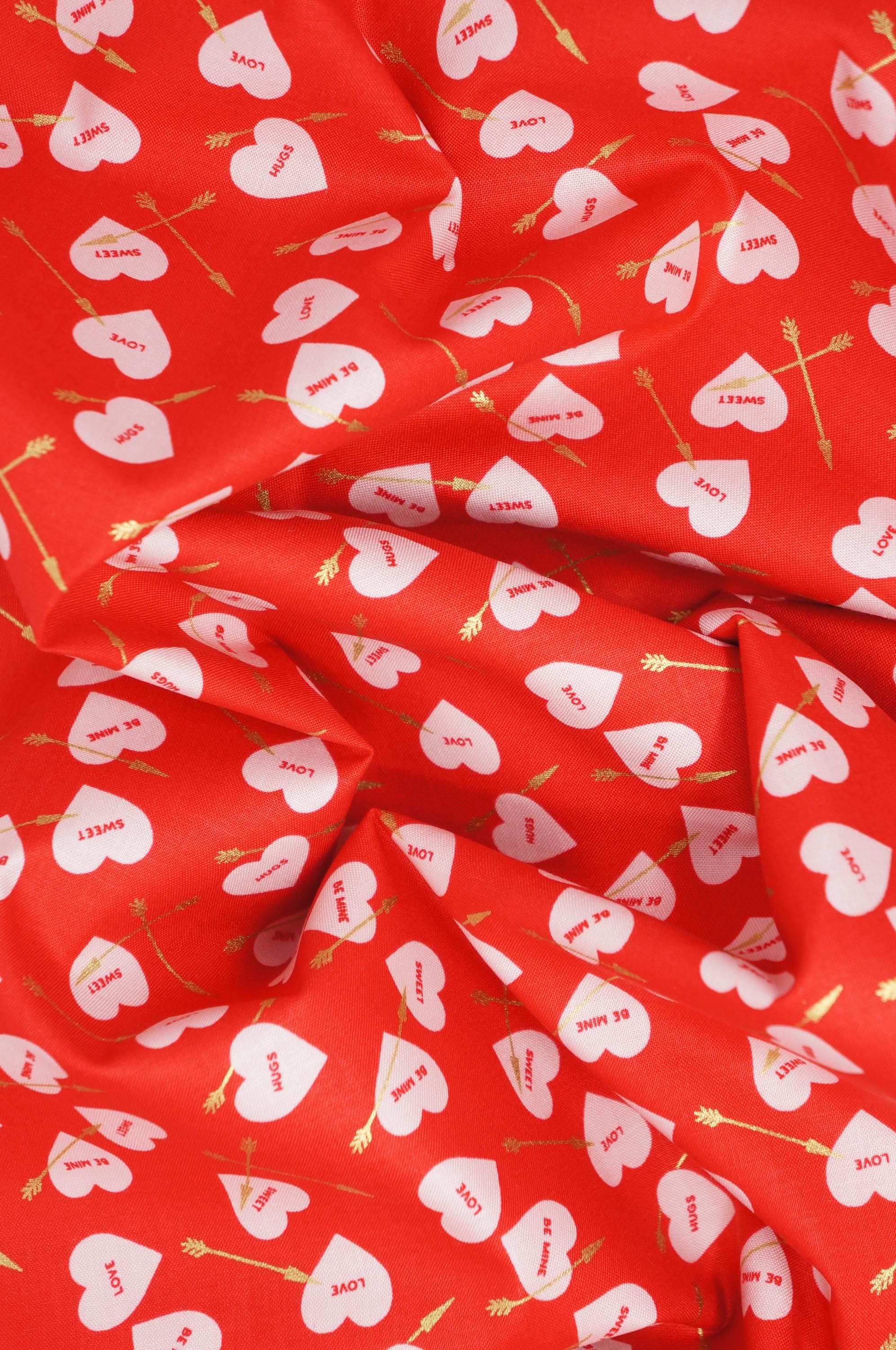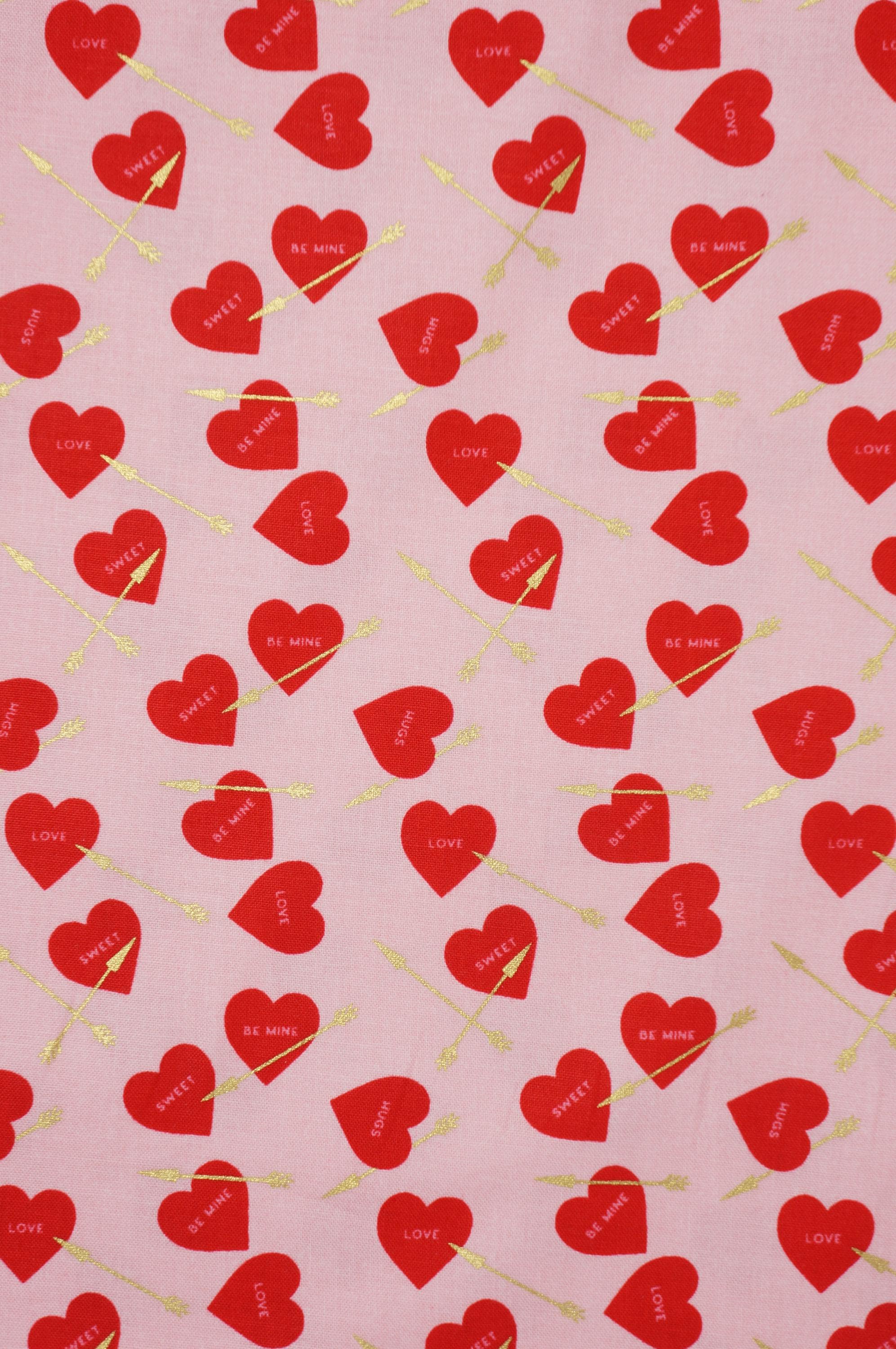 Elevate your creativity with our Heart Arrows on White, Pink or Red quilting cotton fabric from the Sweetheart collection by My Mind's Eye for Riley Blake Designs. This versatile quilting cotton is perfect for quilting, apparel, and home decor. The design features conversation hearts with gold metallic arrows on a cream, pink or red background. Ideal for Valentine's Day projects and beyond, this high-quality fabric ensures durability and a soft feel. Get creative with Riley Blake – order now and let your imagination soar!