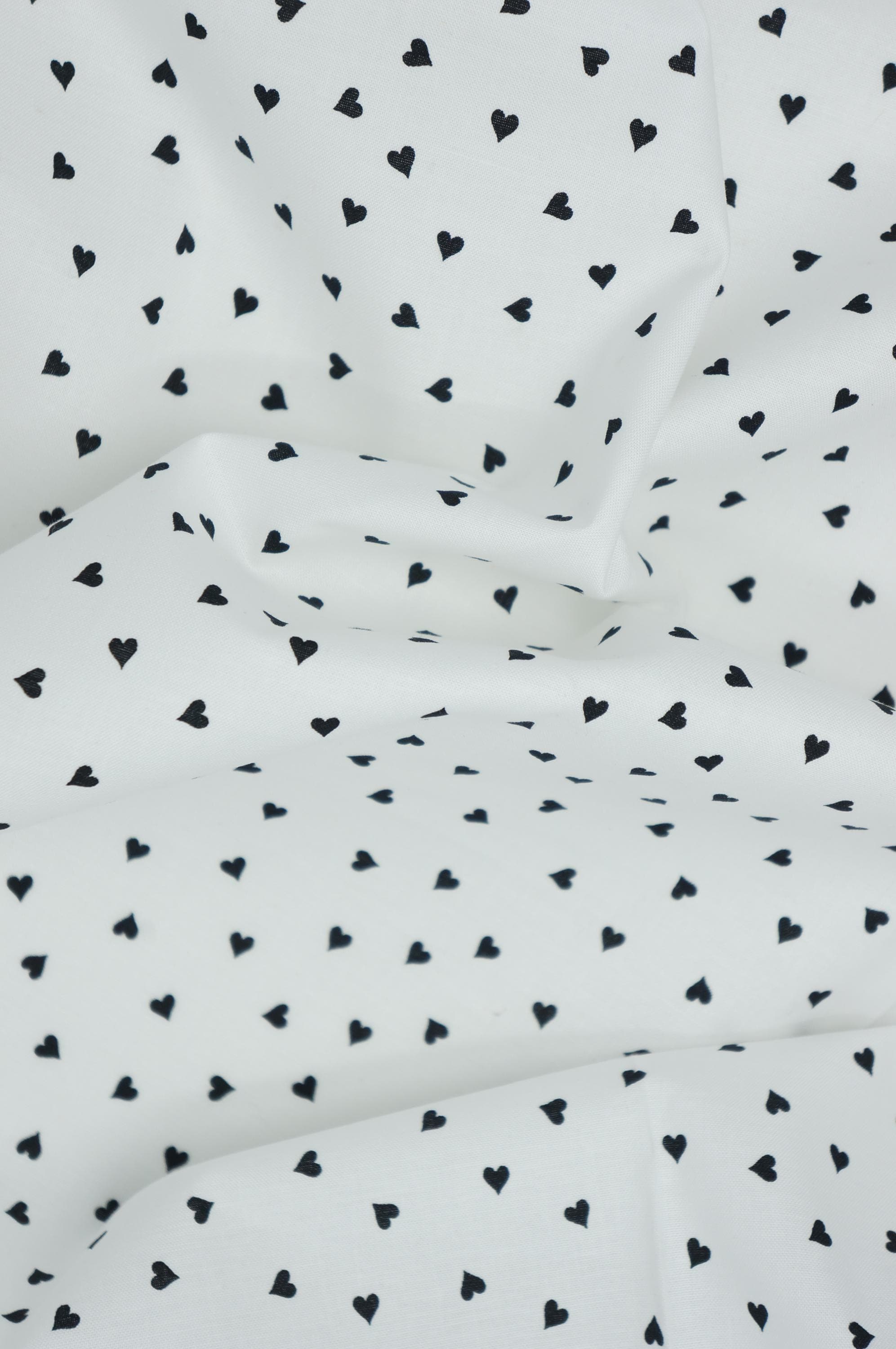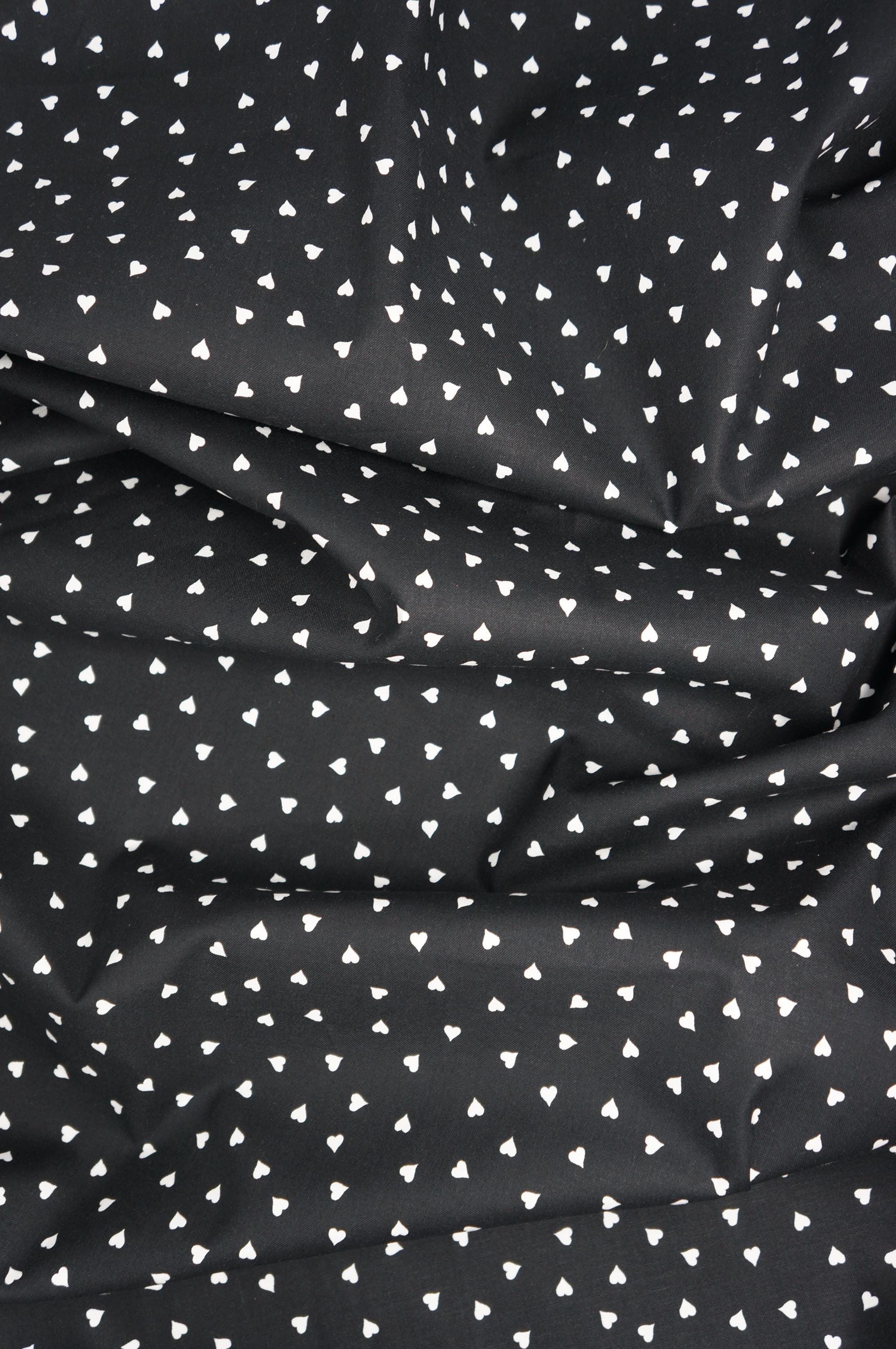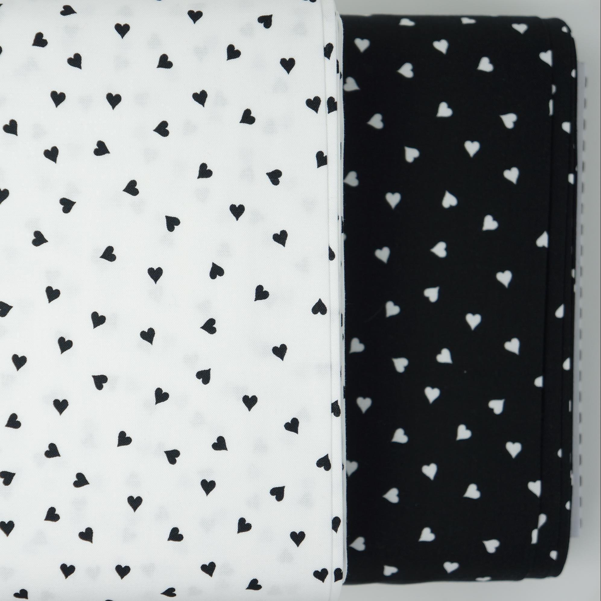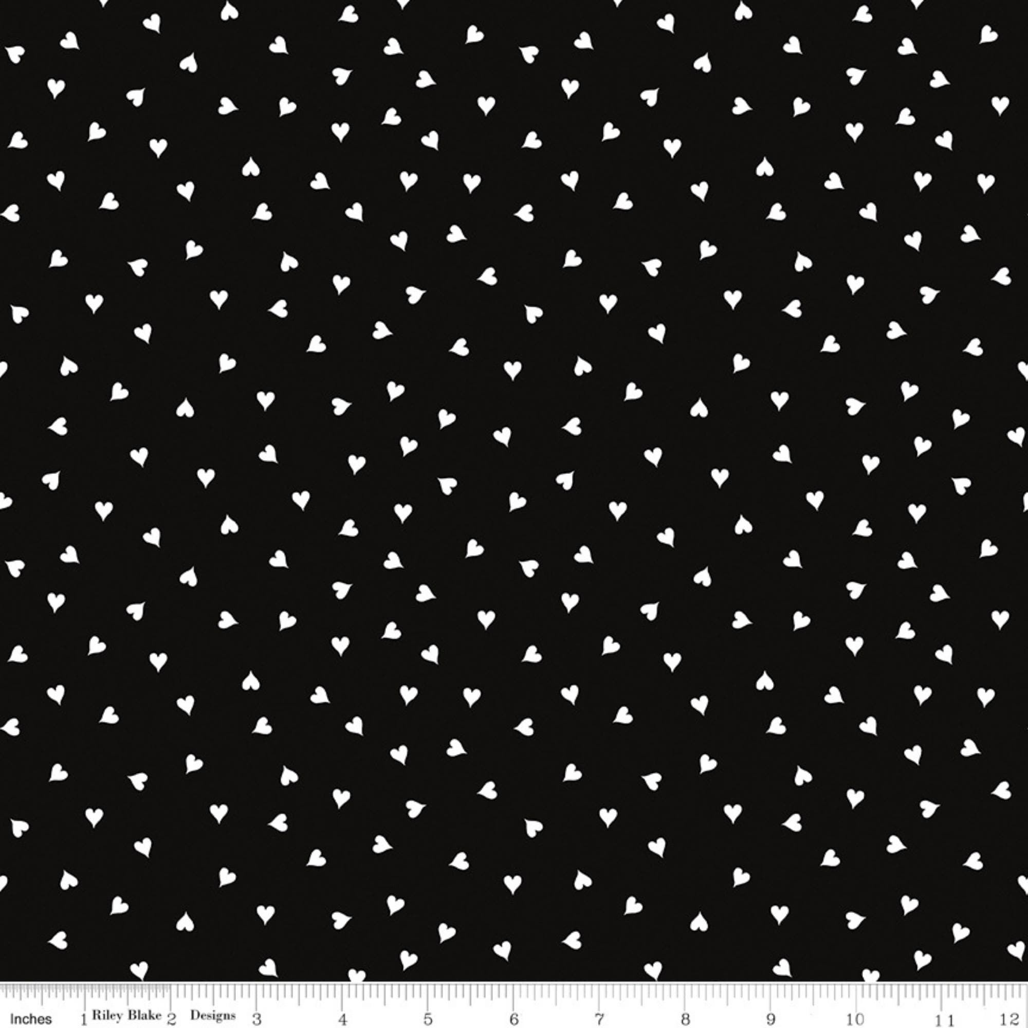If you're looking for a sweet and charming fabric to make your Valentine's Day projects, look no further than this Small Heart quilting cotton fabric designed by J. Wecker Frisch from the Take Heart Collection for Riley Blake Designs. There are two color ways to choose from: one has small black hearts tossed on a white background and the other has white hearts tossed on a black background. Whether you want to make a cozy picnic blanket, a cute table runner, or a romantic pillowcase, this fabric will add some warmth and cheer to your home. This fabric is made of 100% high quality cotton and has a soft and smooth feel. You'll love the simple design that will make your creations stand out. Order your small heart fabric today and get ready to celebrate love with style!