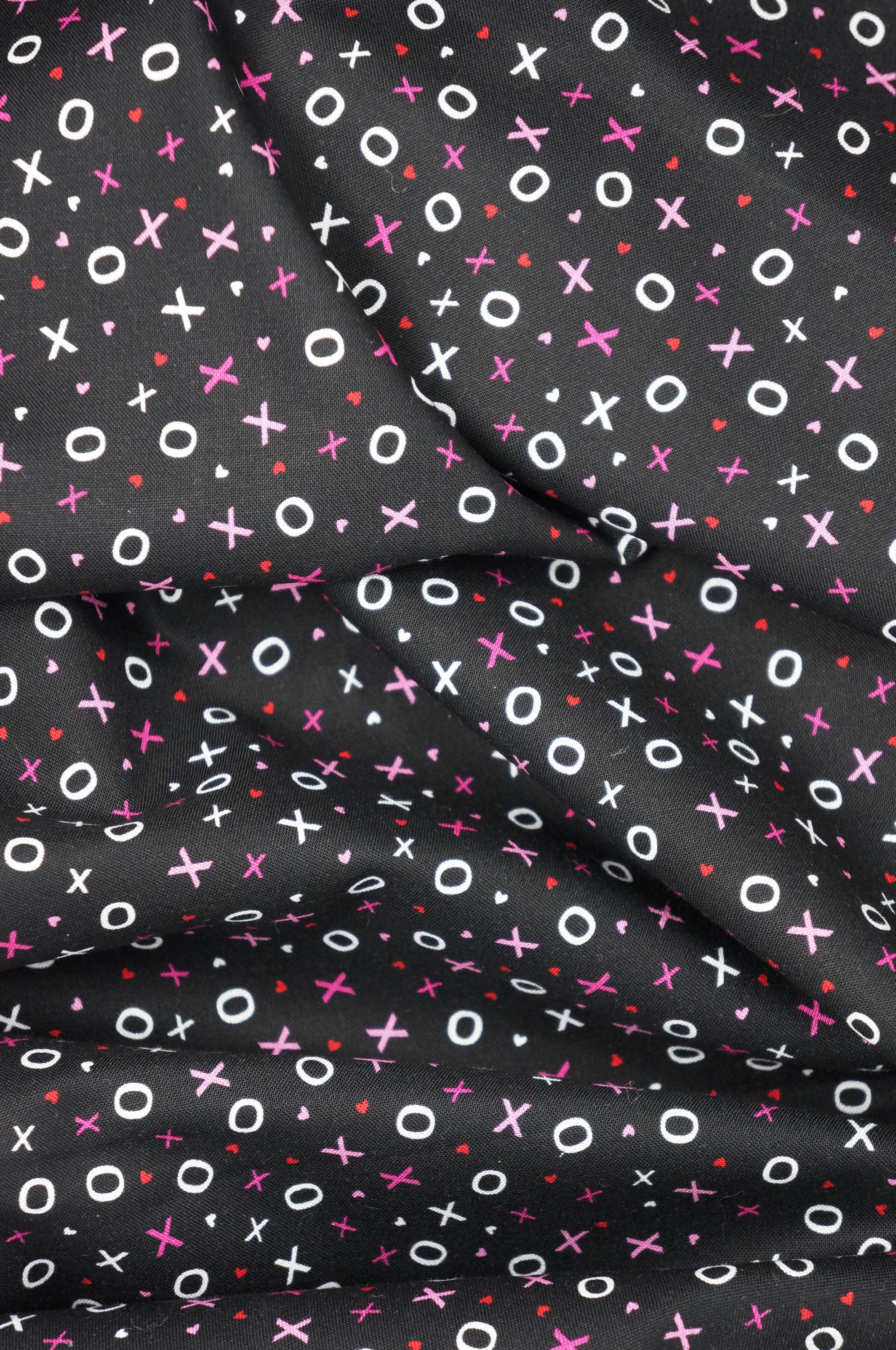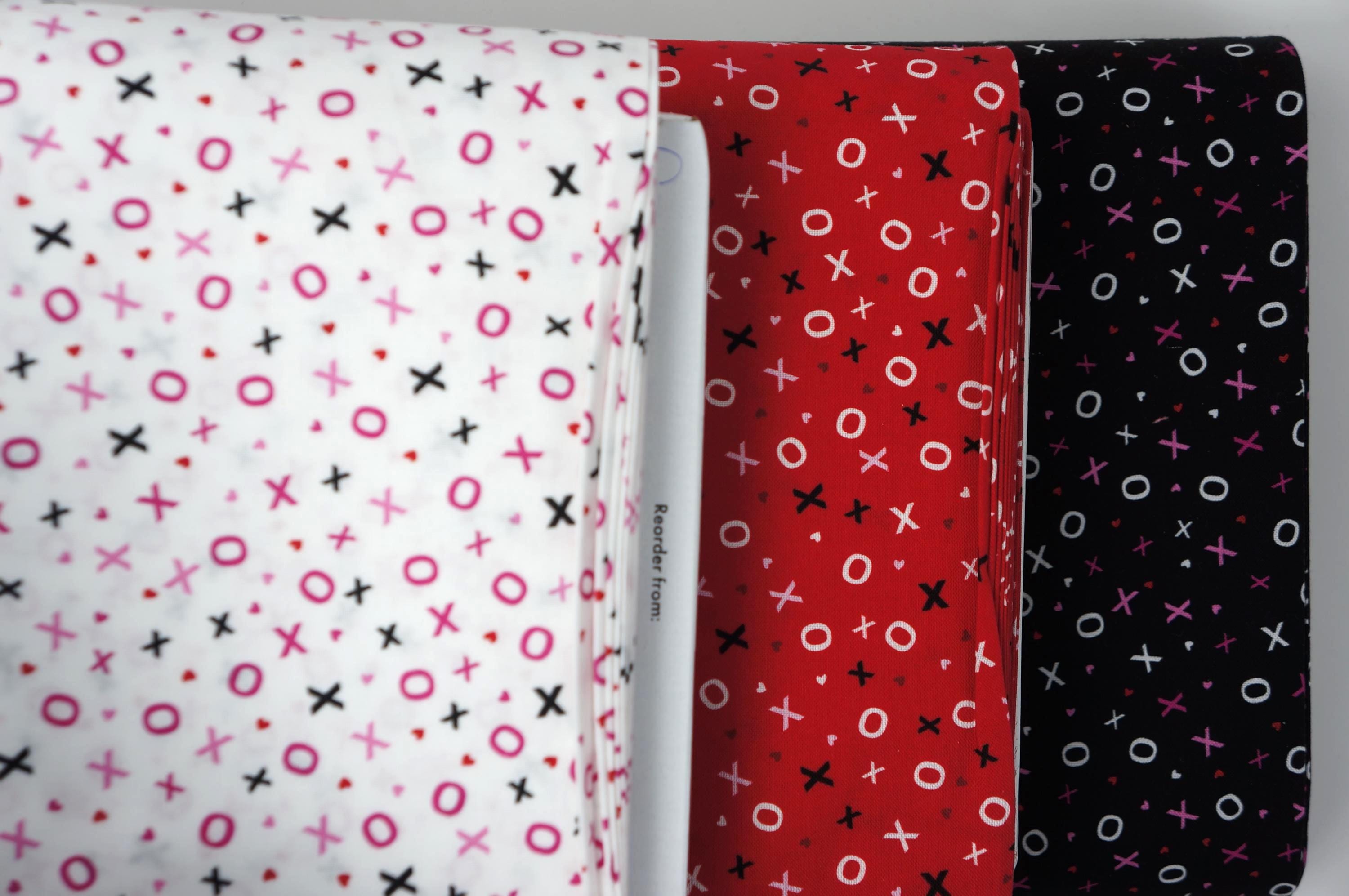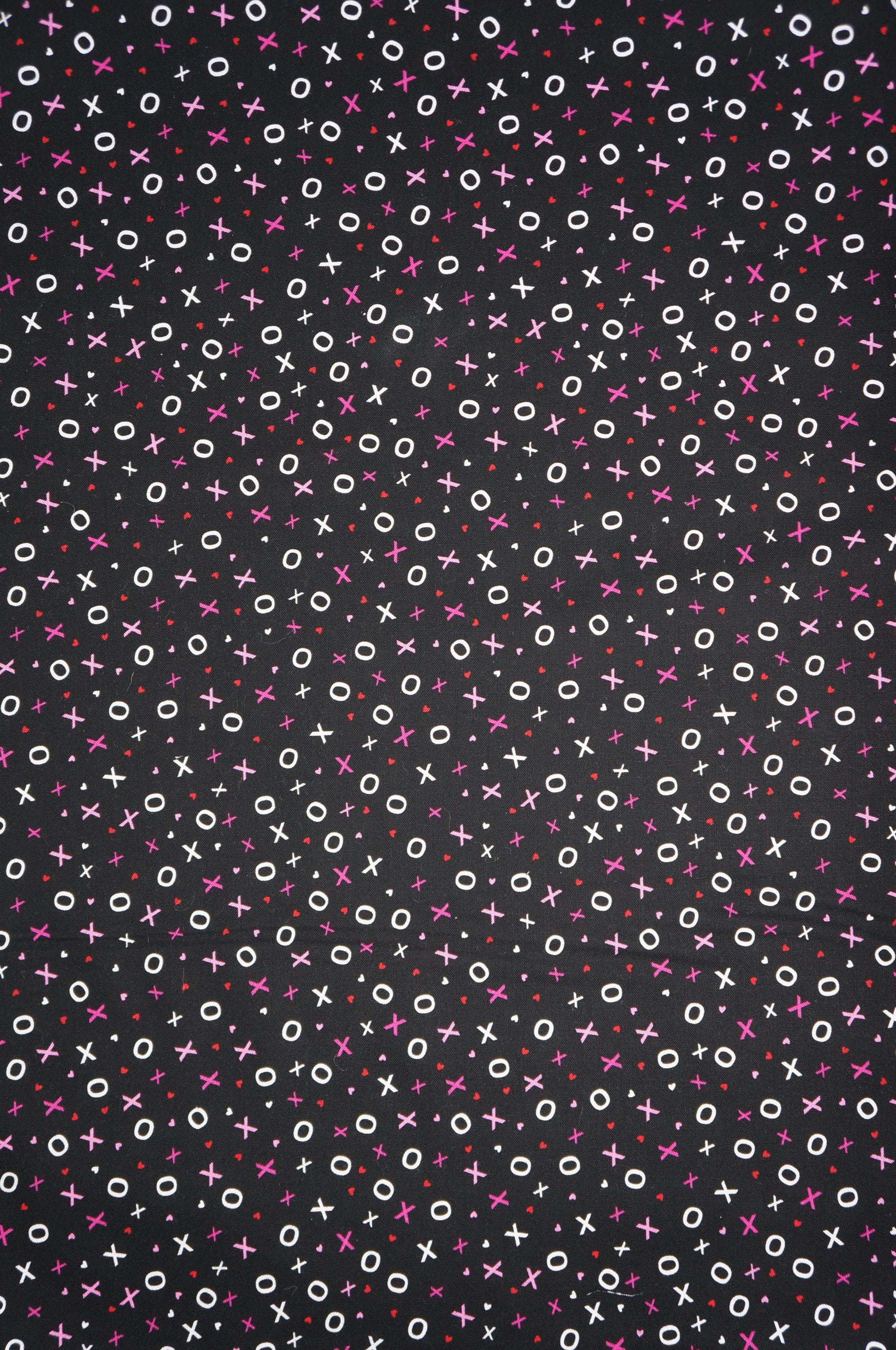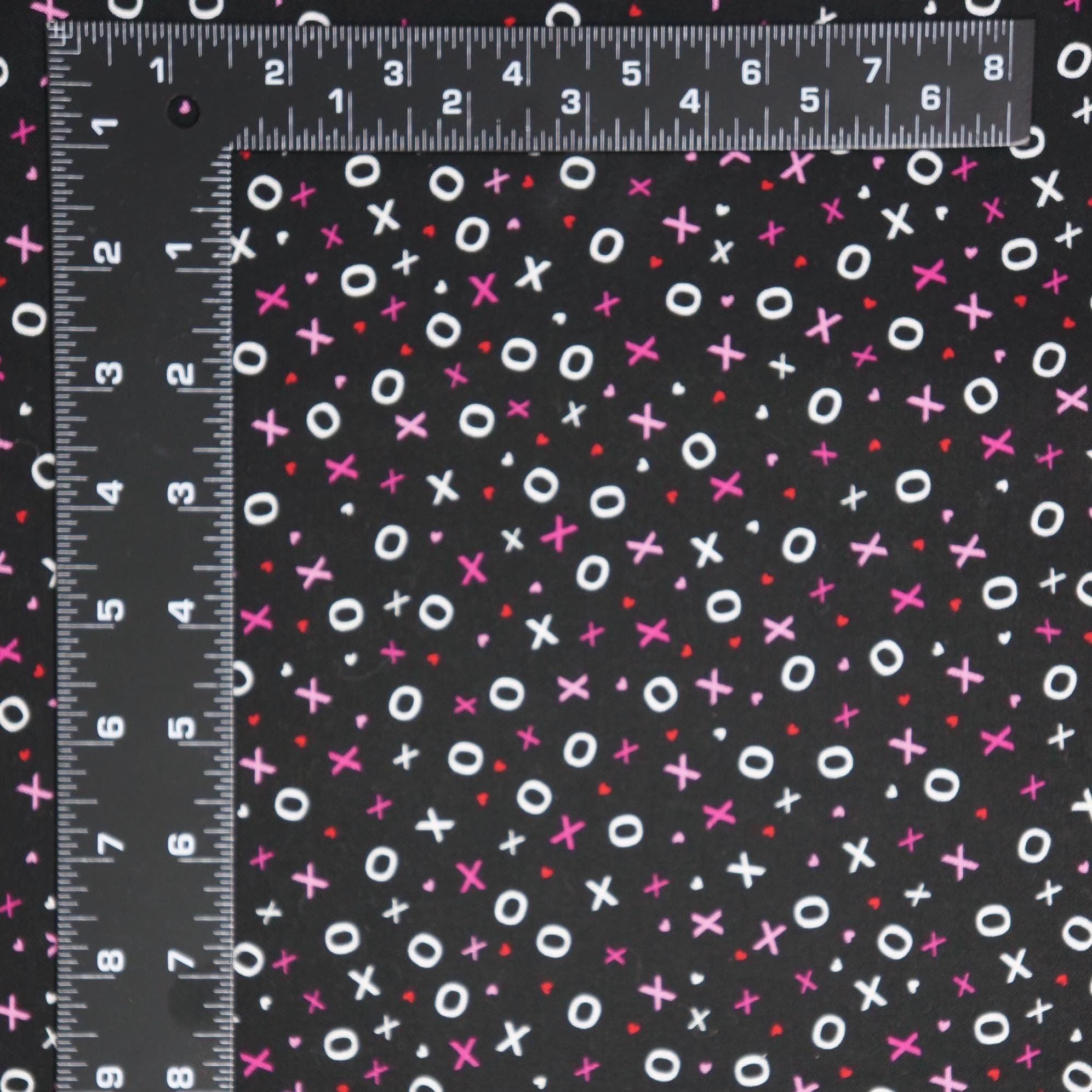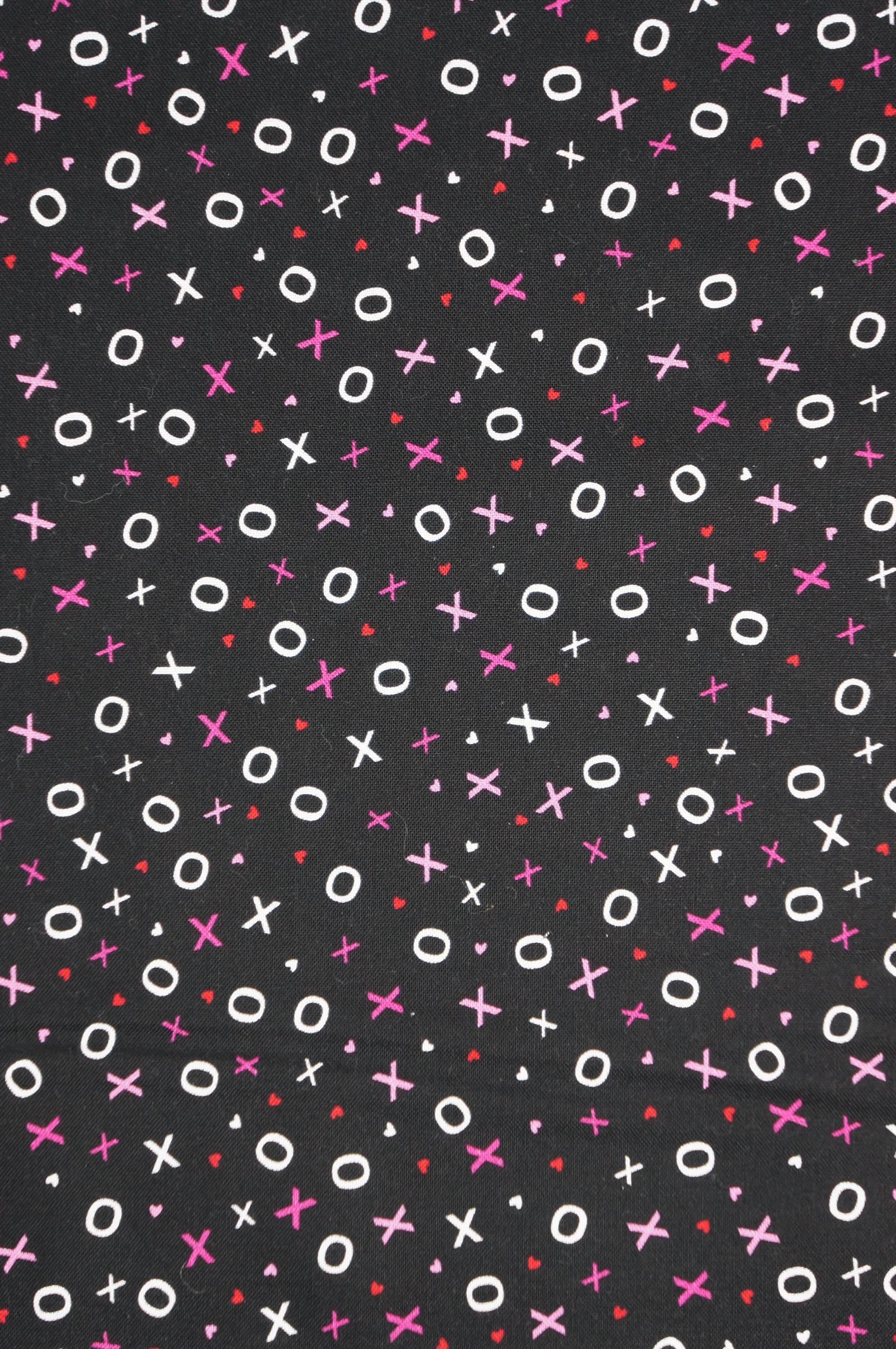 Elevate your creativity with this Valentine quilting cotton fabric from Love You Fur-Ever collection by Greta Lynn for Benartex Kanvas Studio. This versatile quilting cotton is perfect for quilting, apparel, and home decor. The design features scattered white, red and pink X's, O's and tiny hearts on a black background. Ideal for Valentine's Day projects and beyond, this high-quality fabric ensures durability and a soft feel. Add a personal touch with this fabric – order now and let your imagination soar!