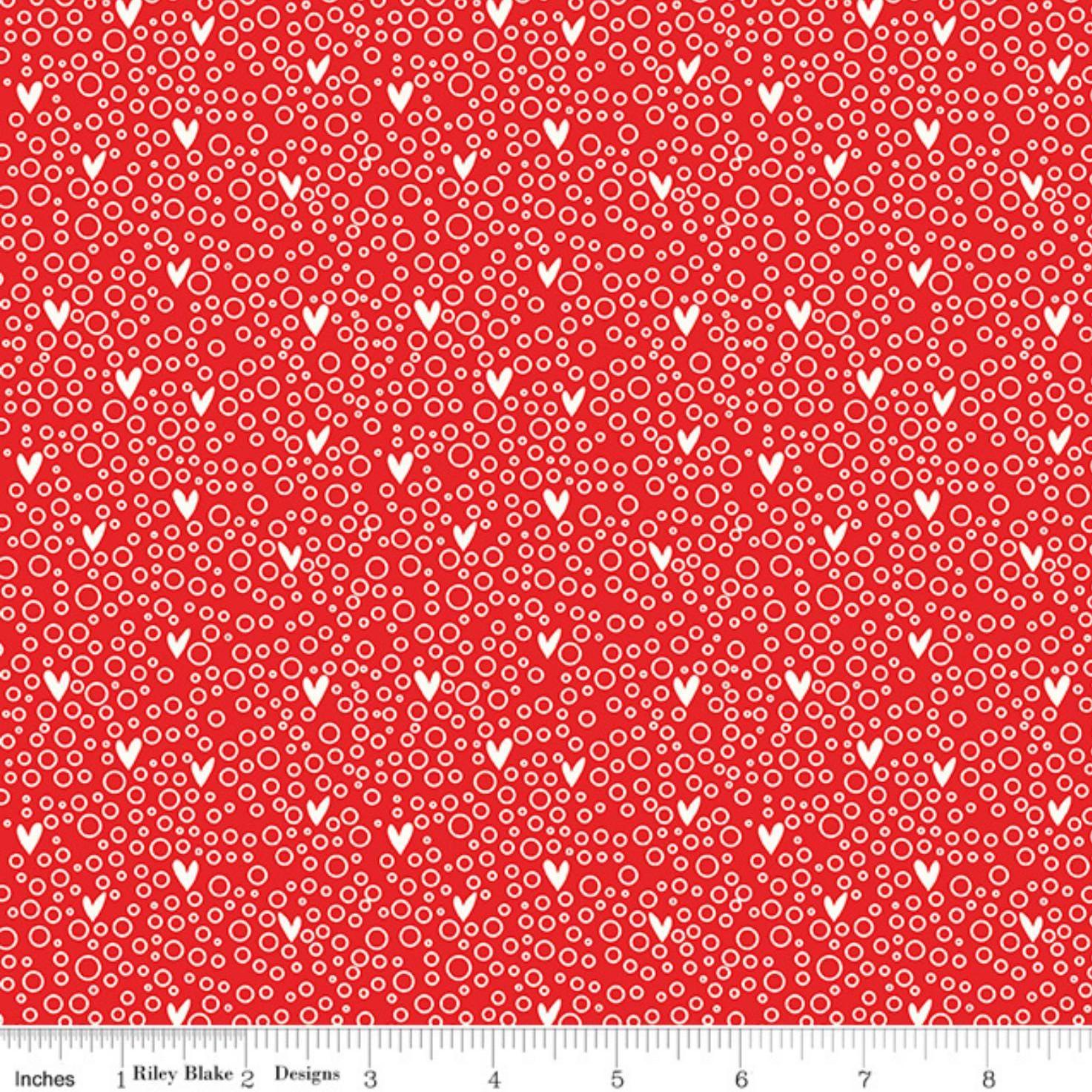 Elevate your creativity with this Valentine quilting cotton fabric from Riley Blake's You & Me collection by Sandy Gervais. This versatile quilting cotton is perfect for quilting, apparel, and home decor. The design features White Hearts and various sized white outlined bubbles tossed on a red background. Ideal for Valentine's Day projects and beyond, this high-quality fabric ensures durability and a soft feel. Add a personal touch with this fabric – order now and let your imagination soar!