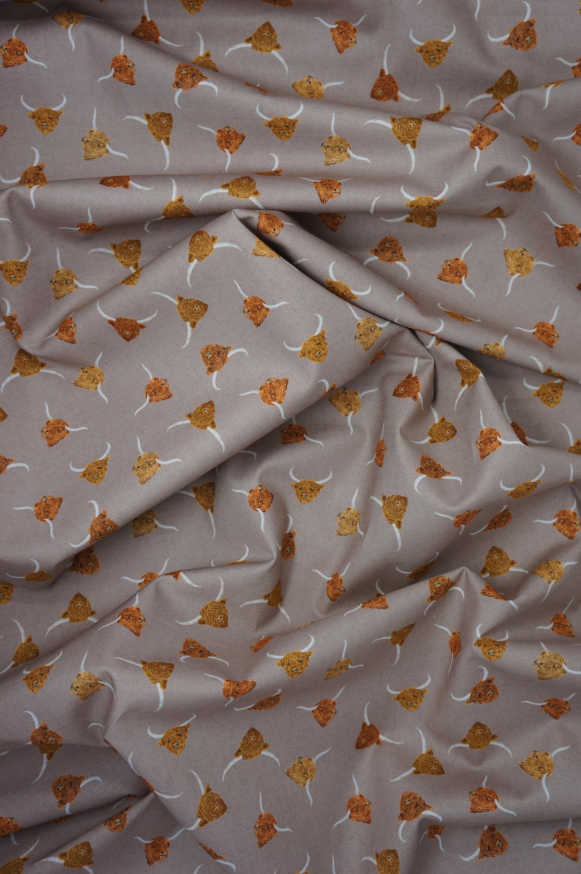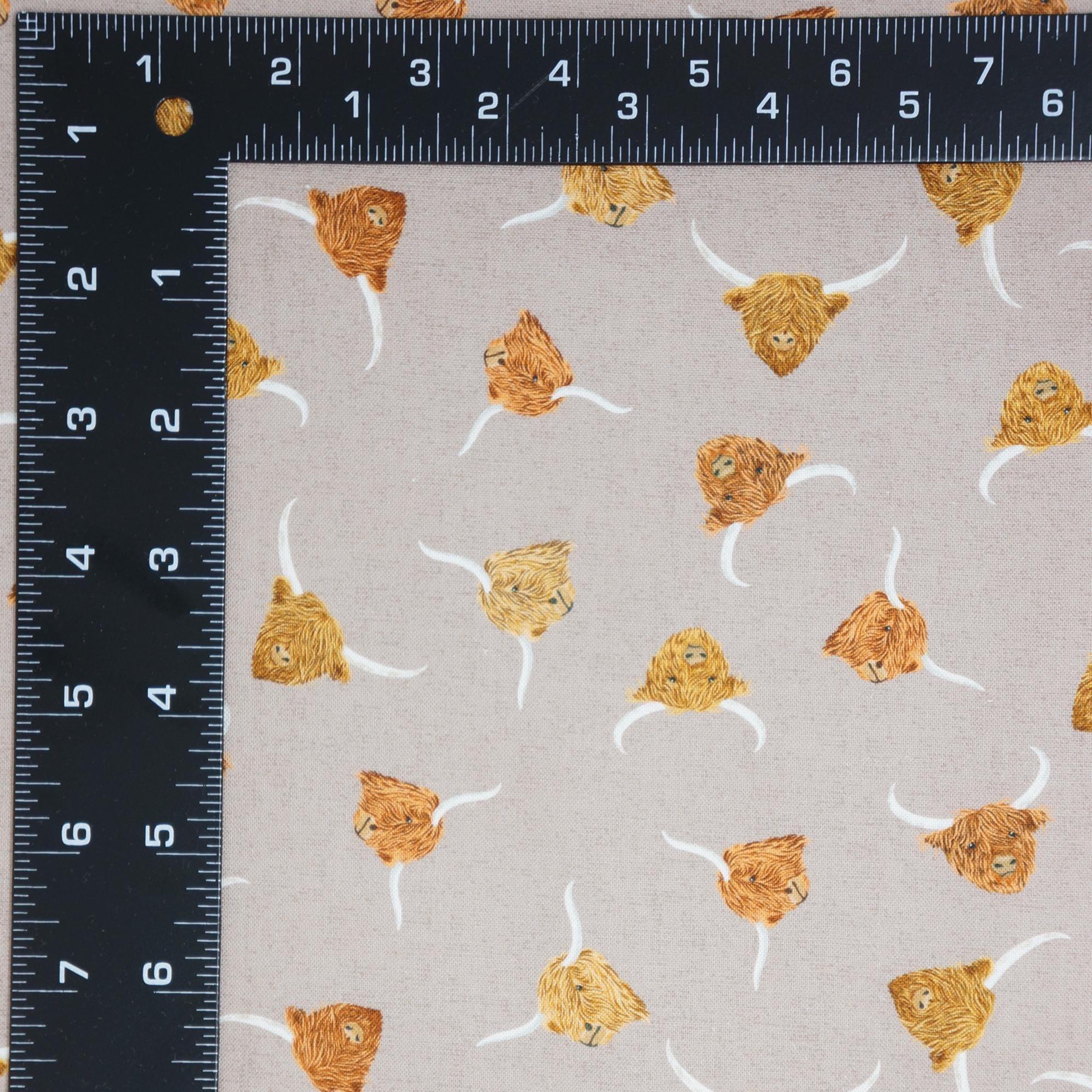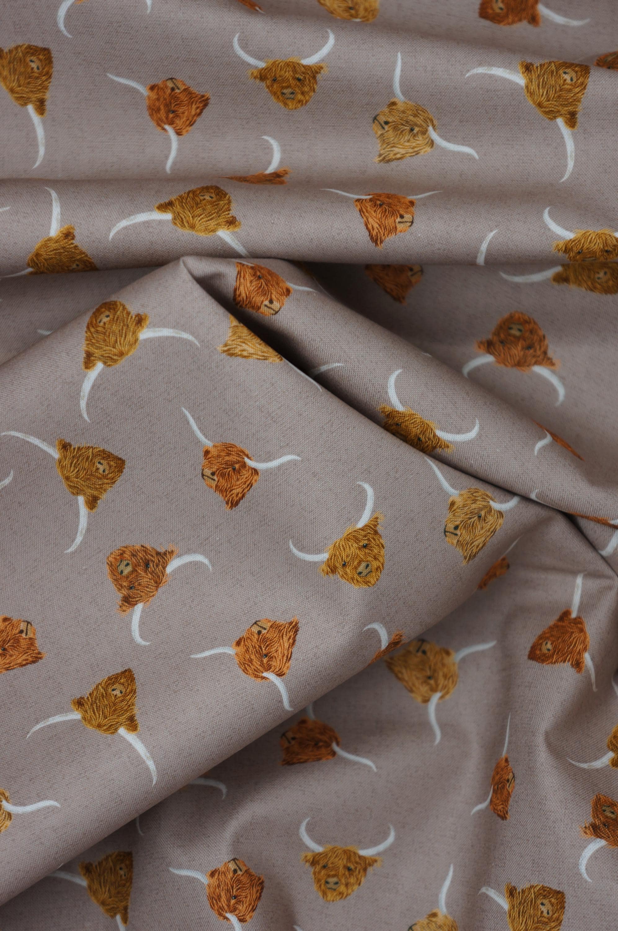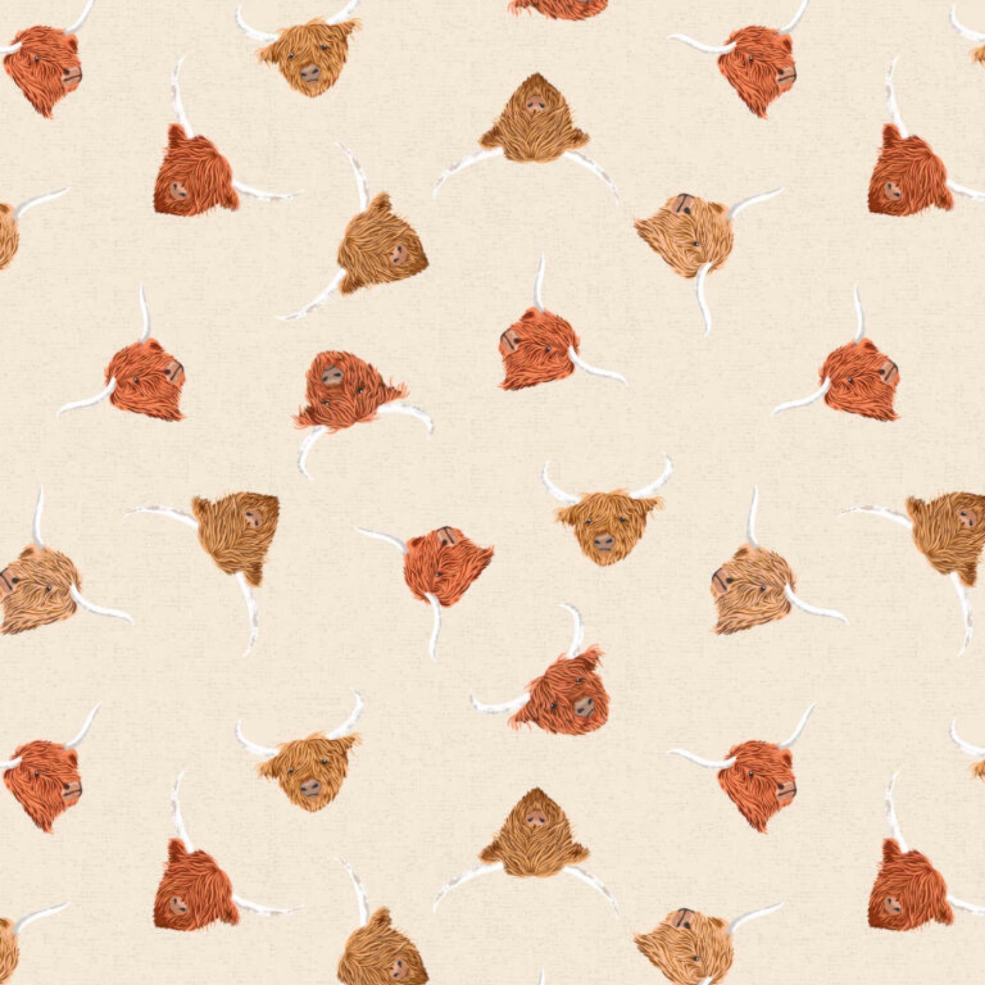 Wrap yourself in the cozy embrace of the Scottish Highlands with this Highland Cow quilting cotton fabric by Lewis and Irene! From the Highlands Collection, this fabric features highland cow heads and their signature shaggy coats printed on a cream or light brown background. Whether you're crafting a quilt, making home decor accents, or adding a touch of Highland whimsy to your wardrobe, this fabric is sure to inspire creativity and bring a touch of Scotland to your creations. Embrace the spirit of the Highlands and let your imagination run wild with this Highland Cow quilting cotton fabric!