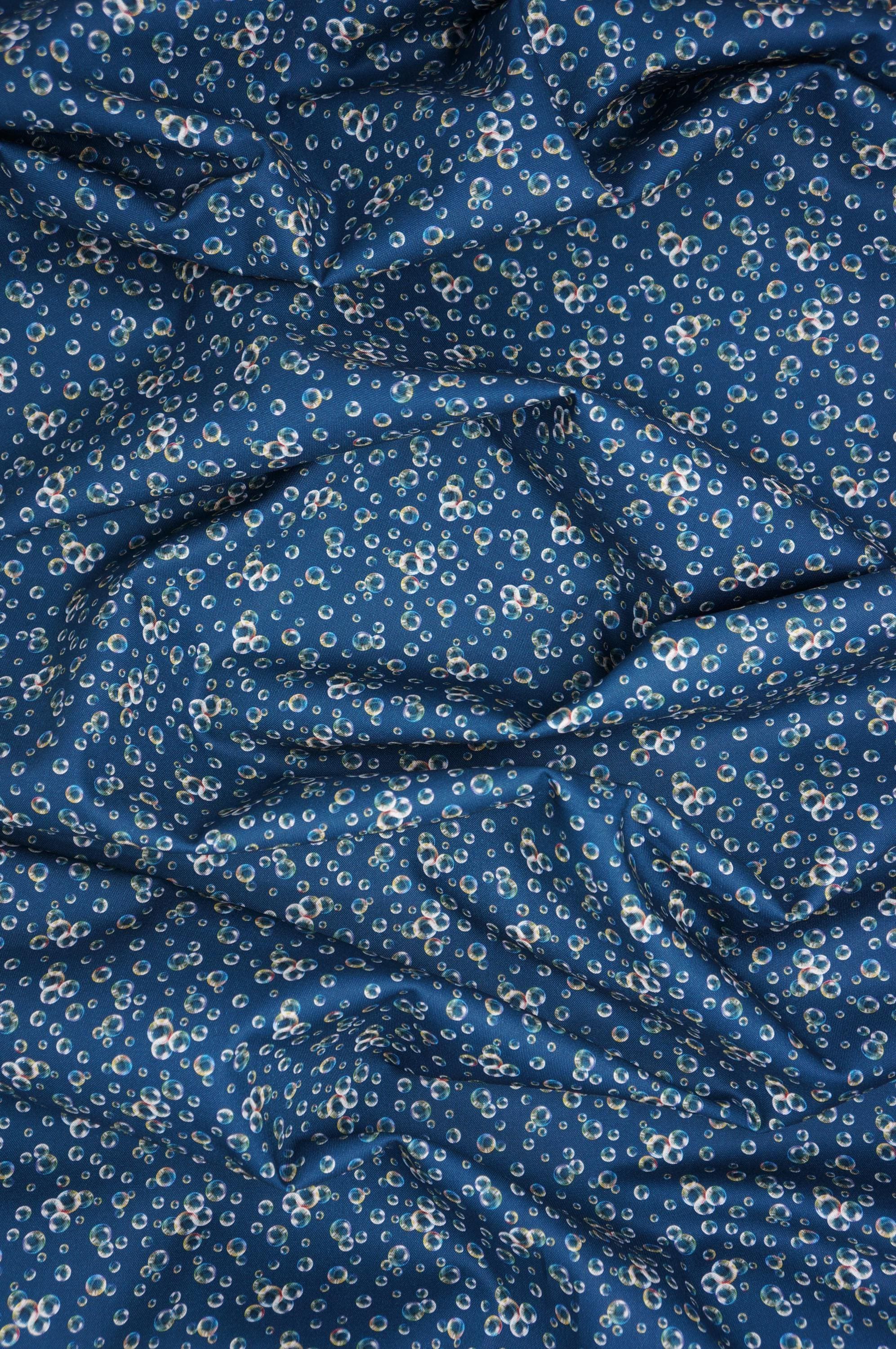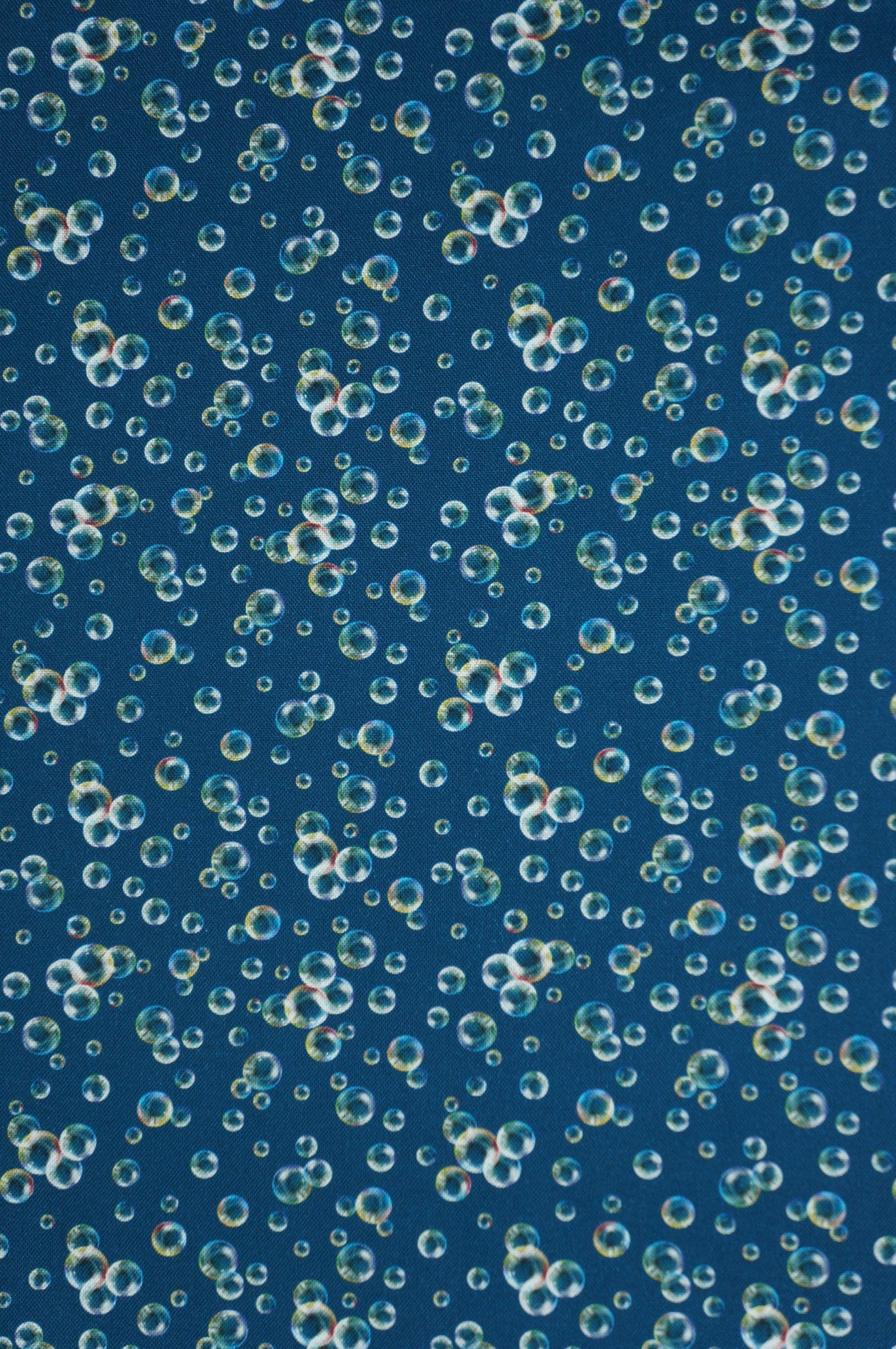 If you are love water, you will love this bubble quilting cotton fabric by Skyline Studio's Under the Sea Collection for Benartex Traditions. This enchanting fabric features a captivating design of bubbles in various sizes, floating against a deep teal background, giving an underwater feel. The bubbles are intricately detailed with a blend of colors, adding a dynamic and lively texture to the fabric. Ideal for crafting projects that need a touch of whimsy or an oceanic theme, this fabric is perfect for both professional designers and hobbyists looking to add a unique element to their creations.