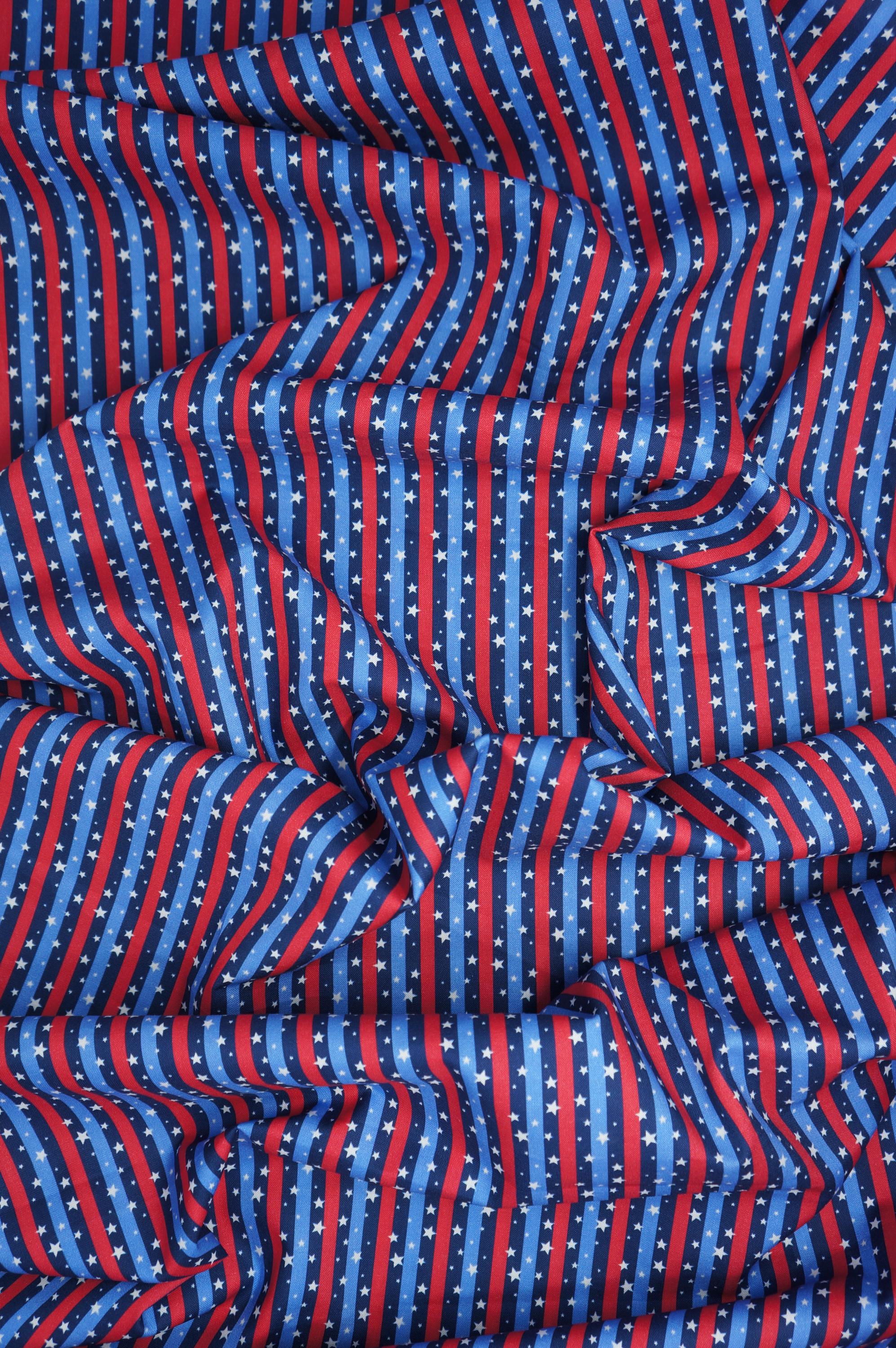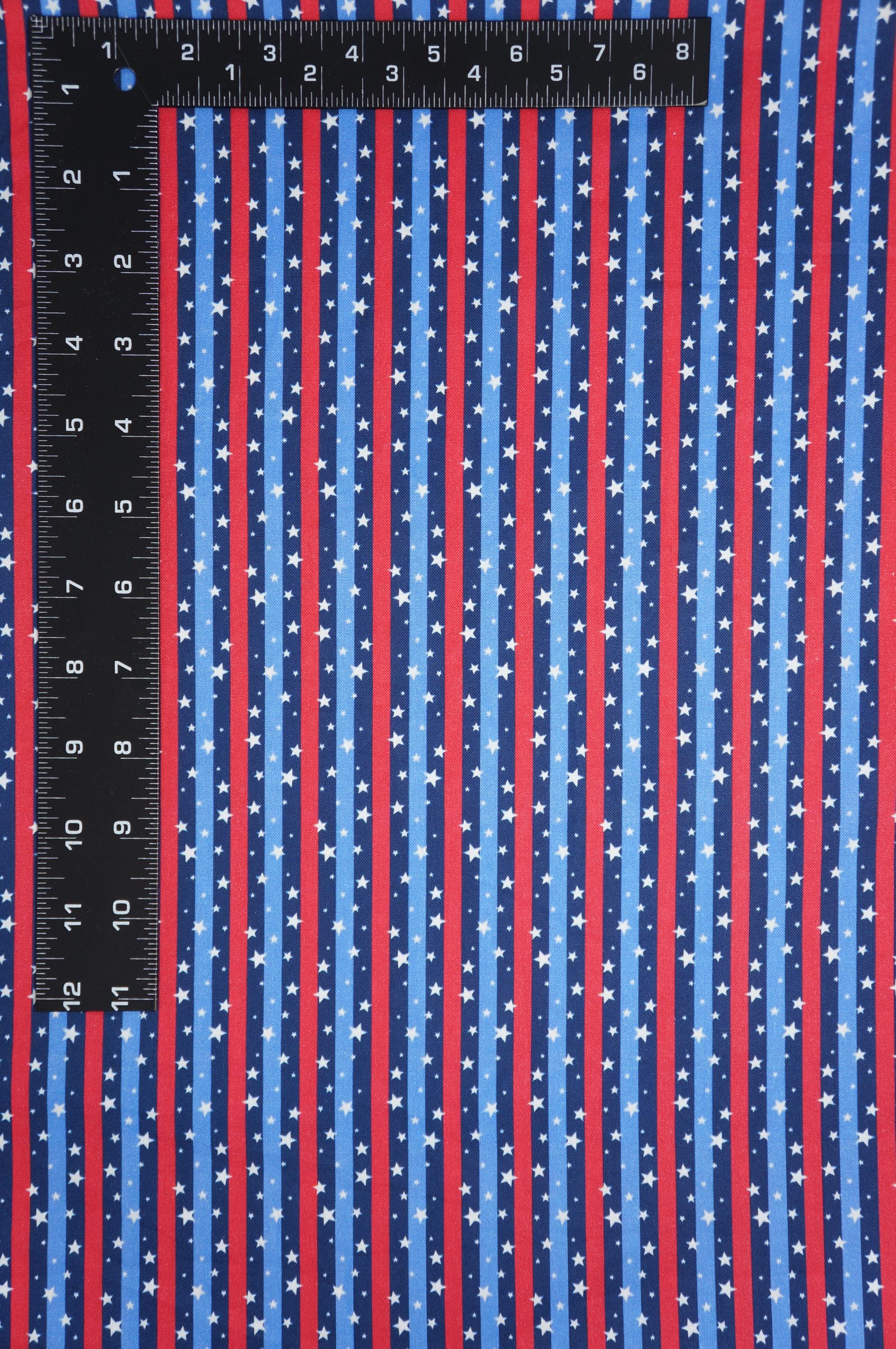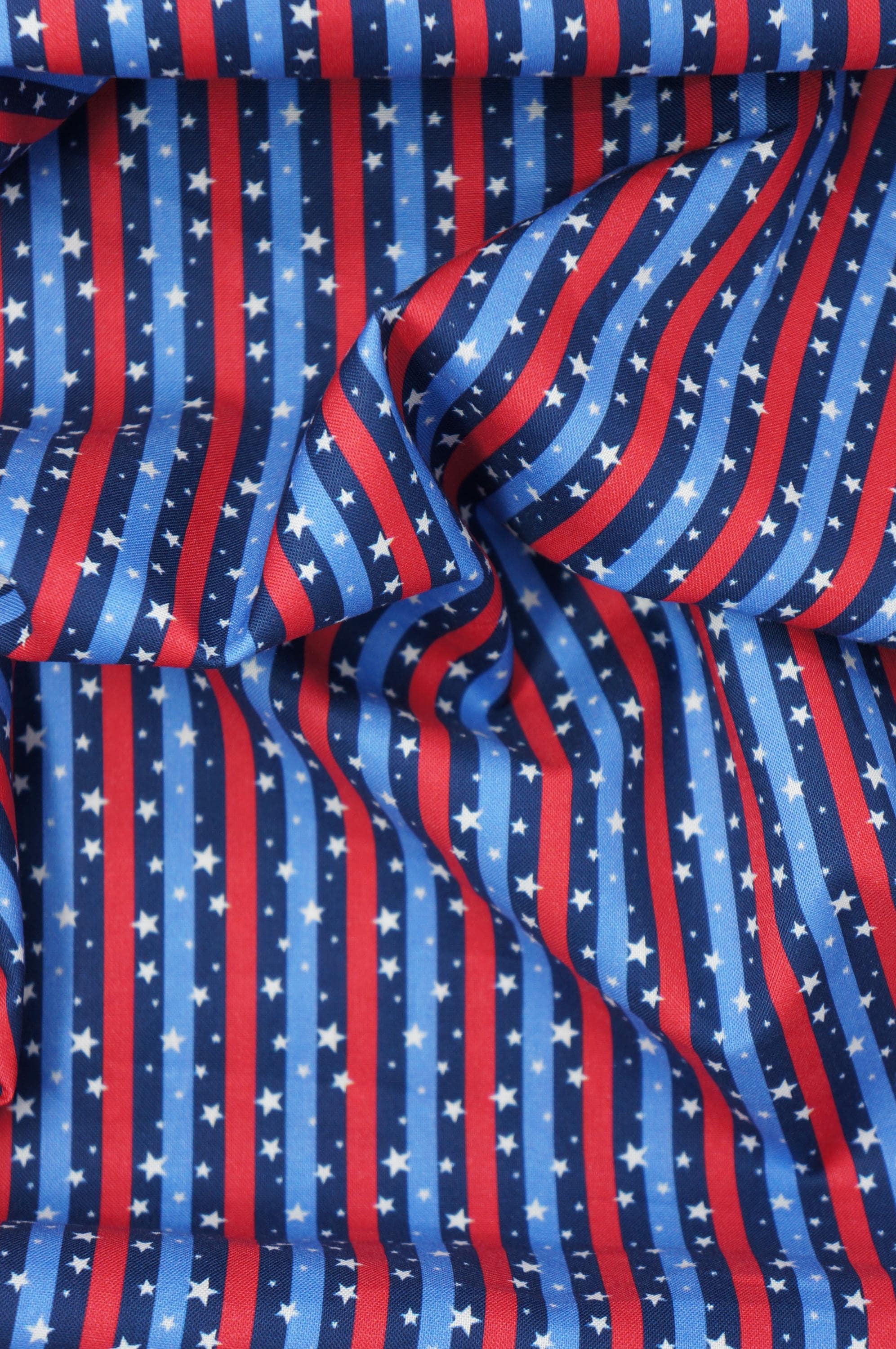Show your patriotic spirit with this beautiful quilting cotton fabric from P&B Textiles! From the Patriotic Minis Collection this vibrant fabric features a striking design of vertical stripes in red, white, and blue, adorned with an array of white stars scattered across the blue stripes, evoking a patriotic theme perfect for various crafting projects. The pattern's bold colors and festive motif make it ideal for creating items that celebrate national pride or special occasions. This fabric is 100% cotton and sold by the yard. Order now and get ready to celebrate Independence Day with style!