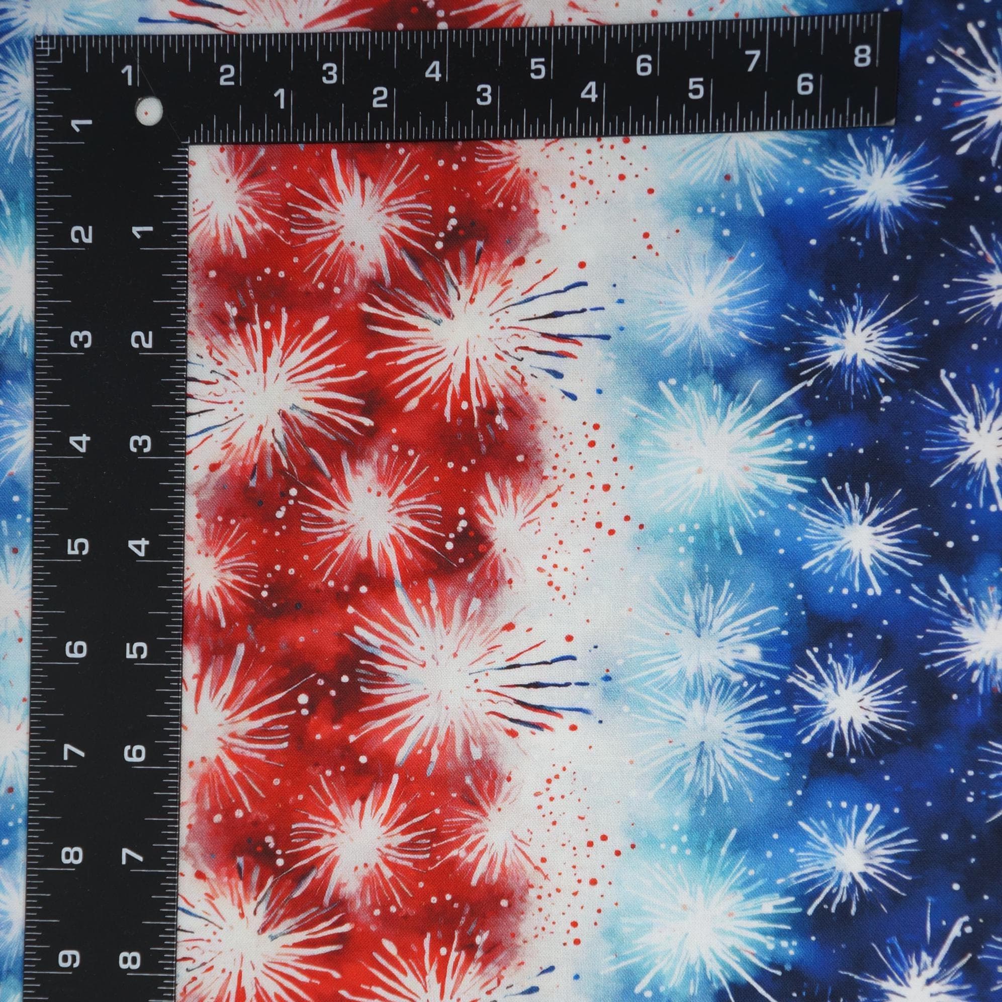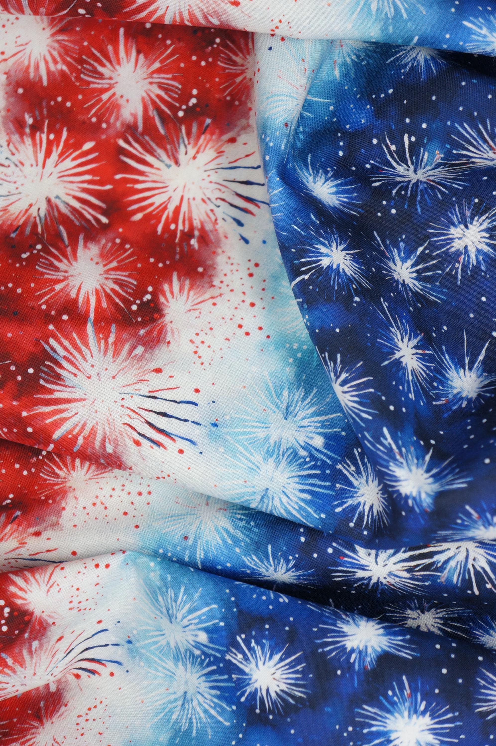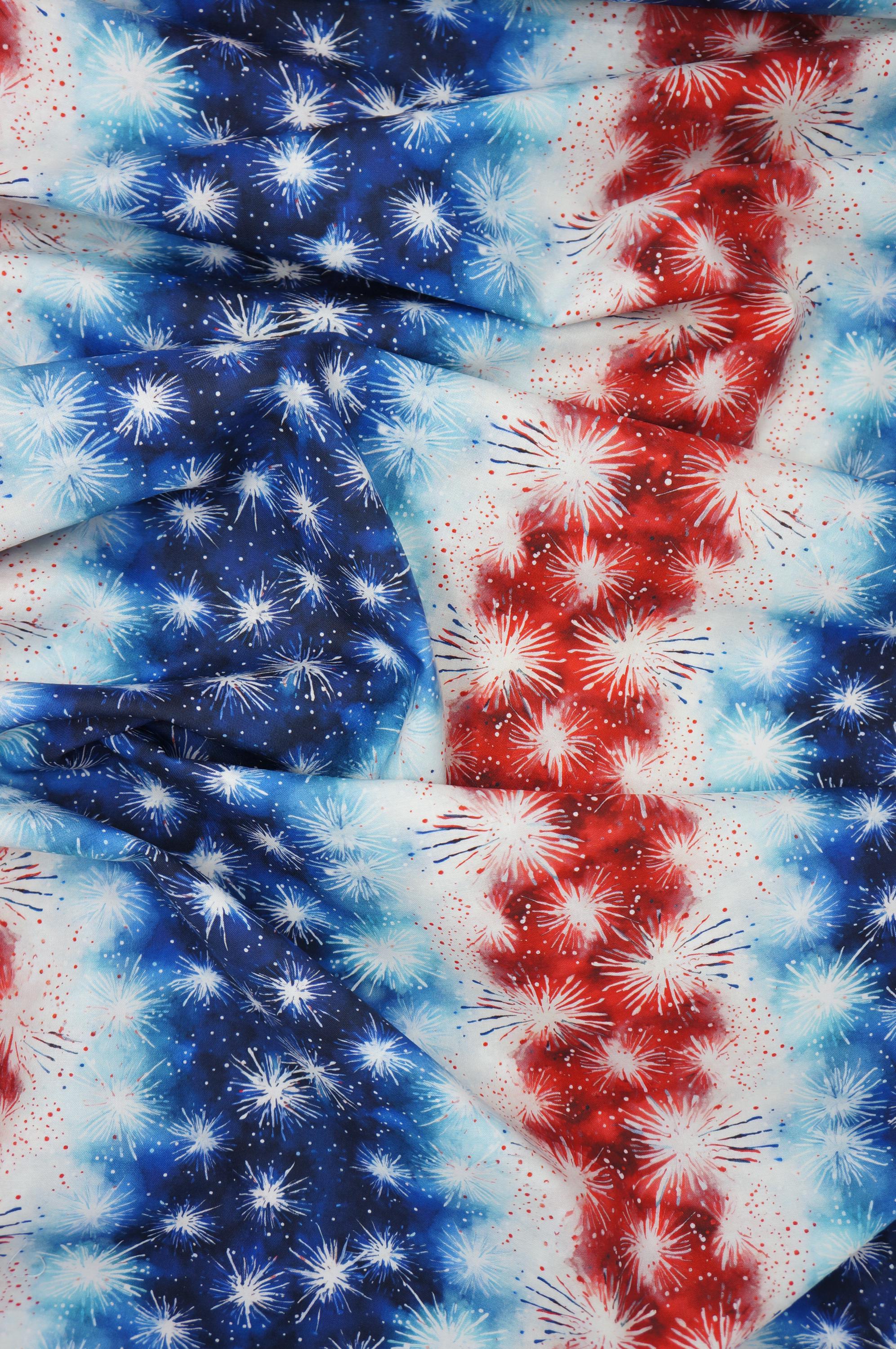 Celebrate in star-spangled style with this dazzling patriotic quilting cotton by RK Studios for Robert Kaufman! Featuring vibrant stripes of red, white, and blue filled with firework bursts, this design captures the magic of summer nights and festive celebrations. The repeating stripe pattern makes it perfect for creating eye-catching quilts, table runners, borders, and coordinated projects with a bold Americana flair. Crafted from premium quilting cotton, it’s soft, durable, and easy to sew—ideal for everything from holiday décor to picnic-ready accessories and patriotic apparel. If you’re looking to add a bright, festive sparkle to your creations, this fabric is sure to light up every project! Please note that this fabric is digitally printed and not a batik.