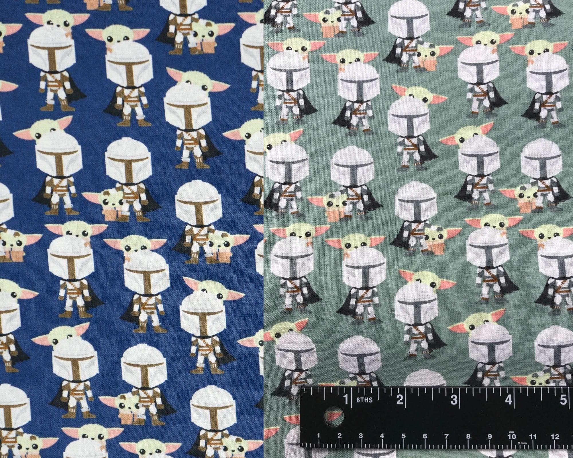 Are you a fan of Star Wars and Baby Yoda? Do you love the Mandalorian and his adorable companion? If so, you will love this licensed novelty cotton fabric that features Baby Yoda and his friend saying hello on a blue or green background. This fabric is perfect for making quilts, pillows, bags, masks, and more. You can show your love for the galaxy far, far away with this fun and colorful fabric. Order yours today and get ready to create something amazing!
