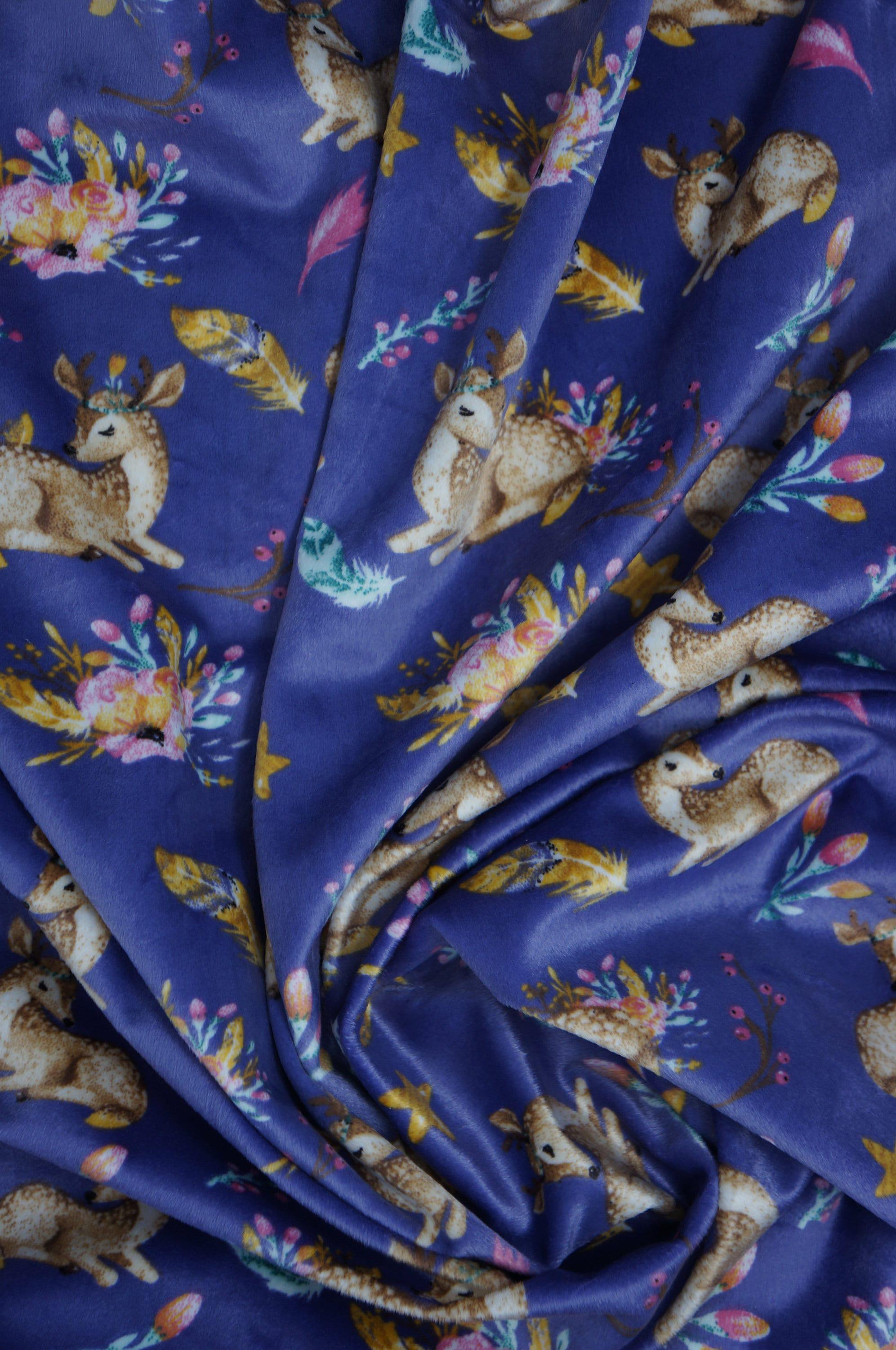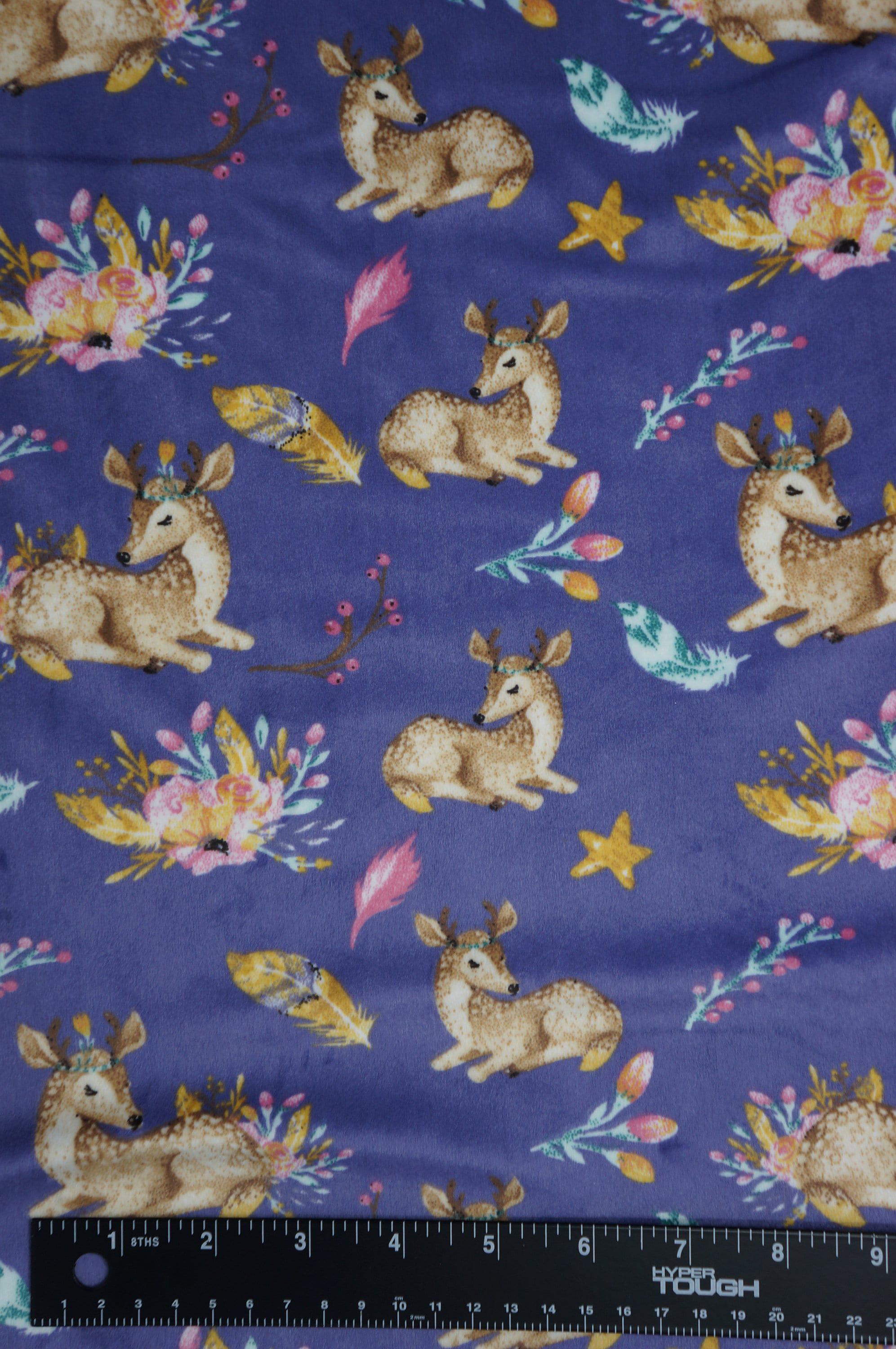 Boho Watercolor Fawn Deer Woodland Minky Fabric