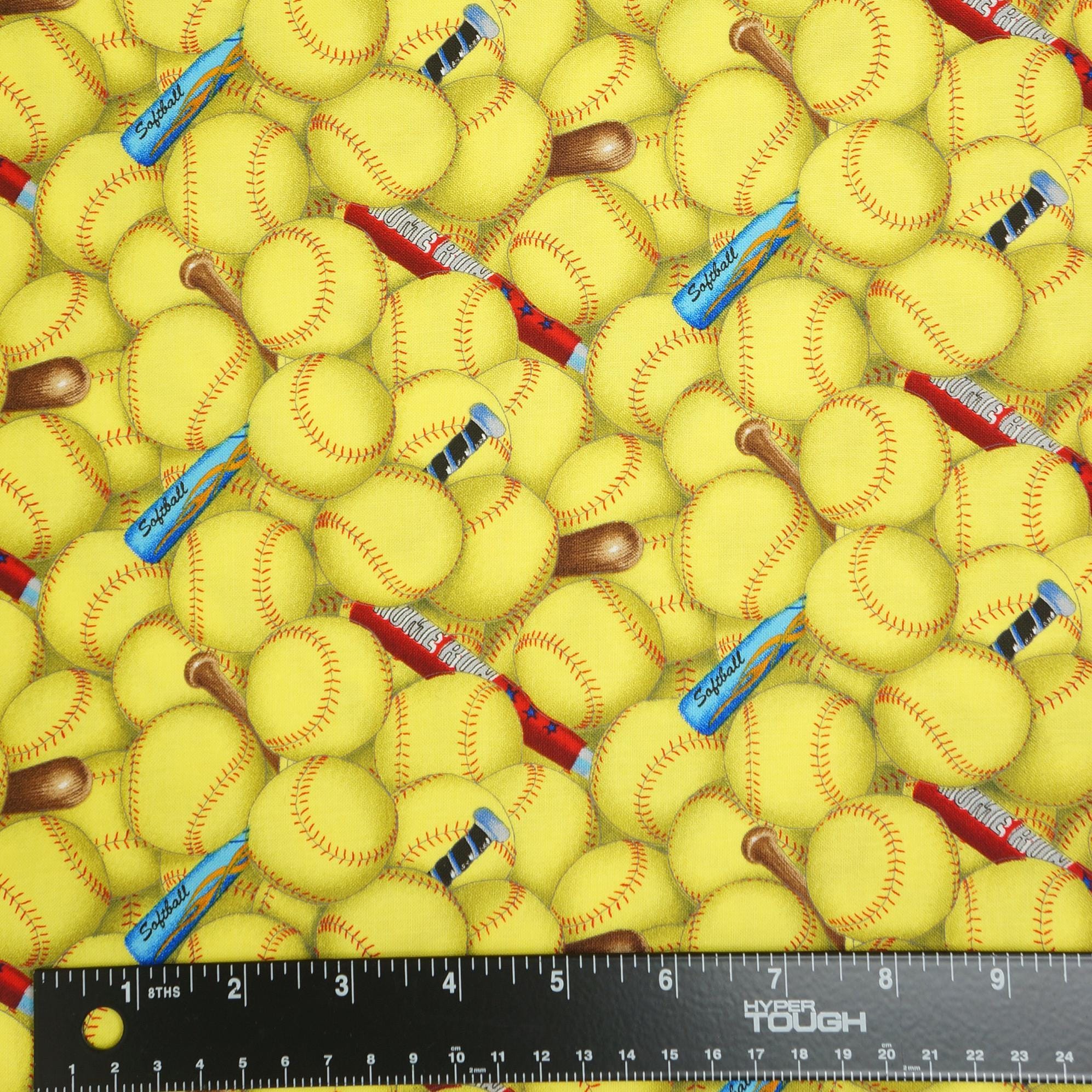 If you love softball, you'll love this fabric! Softballs and Bats by Elizabeth's Studios Fabric Cotton Quilting Fabric is a fun and colorful print that features yellow softballs and colorful bats. This fabric is perfect for quilting, crafting, home decor and more. It's 100% cotton and easy to sew with. You can make quilts, pillows, bags, curtains, table runners and anything else you can imagine with this fabric. Show off your passion for softball with this amazing fabric!